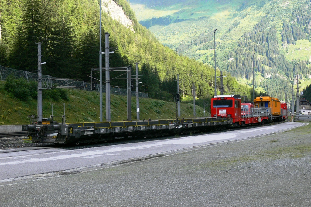 ÖBB Lösch- und Rettungszug mit Transportwagen, Aufnahme am 26.07.2009 in Bahnhof Böckstein
