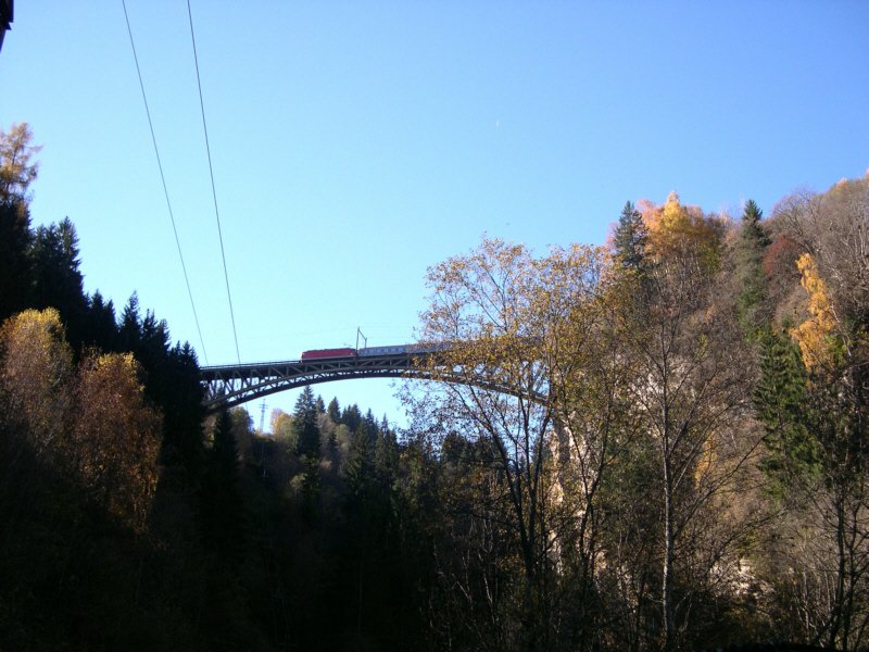 Der Höhenweg Badgastein - Bad Hofgastein endet an der Angertalschlucht. Hier kann man entweder den Berg hinauf nach Angertal und wieder nach Badgastein laufen, oder man läuft so wie wir, den Berg hinunter nach Bad Hofgastein. Dabei kann man den Viadukt noch einmal von unten betrachten, nur so gibt es ihn leider nicht mehr. 28.10.2005 Jens Kaubisch