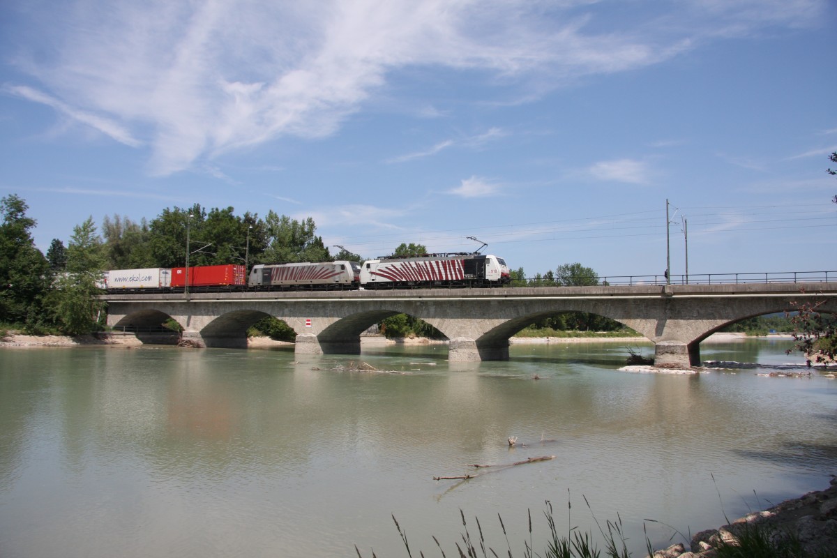 139 133 mit KLV-Zug am 09.09.2012 auf der Saalachbrücke zwischen Freilassing und Salzburg
