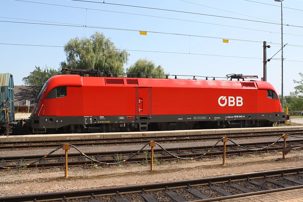 1142 623 6 hat die Ehre den EC 150 (Ljubljana - Wien Meidling) von Spielfeld Strass nach Wien Meidling zu ziehen. Der Lokwechsel an der Grenze Ö /Slo wurde gerade vollzogen und nun geht es nach kurzem Halt weiter Richtung Graz, April 2013