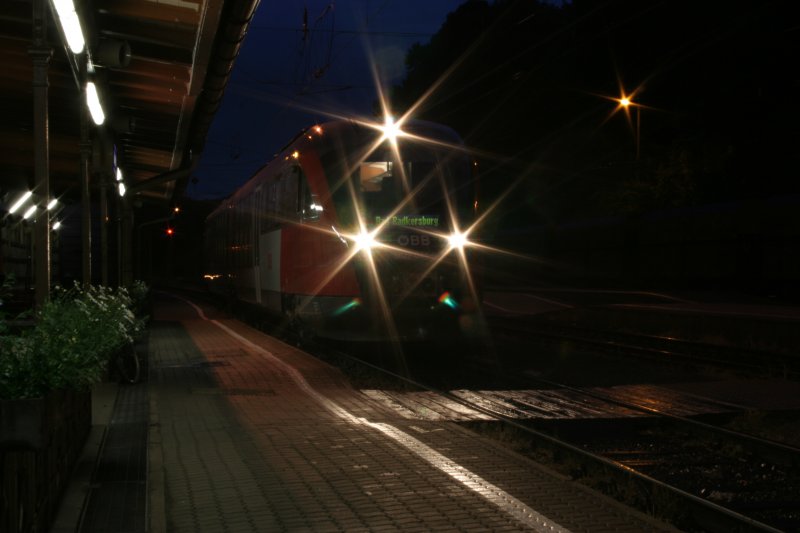 Im Hintergrund vor dem Bahnhofsgebäude sieht man auch einen Regionalzug von Bad Radkersburg kommend, der rechtzeitig ankam um Reisende den Umstieg in den Zug Richtung Graz zu ermöglichen. Michael Grinschgl