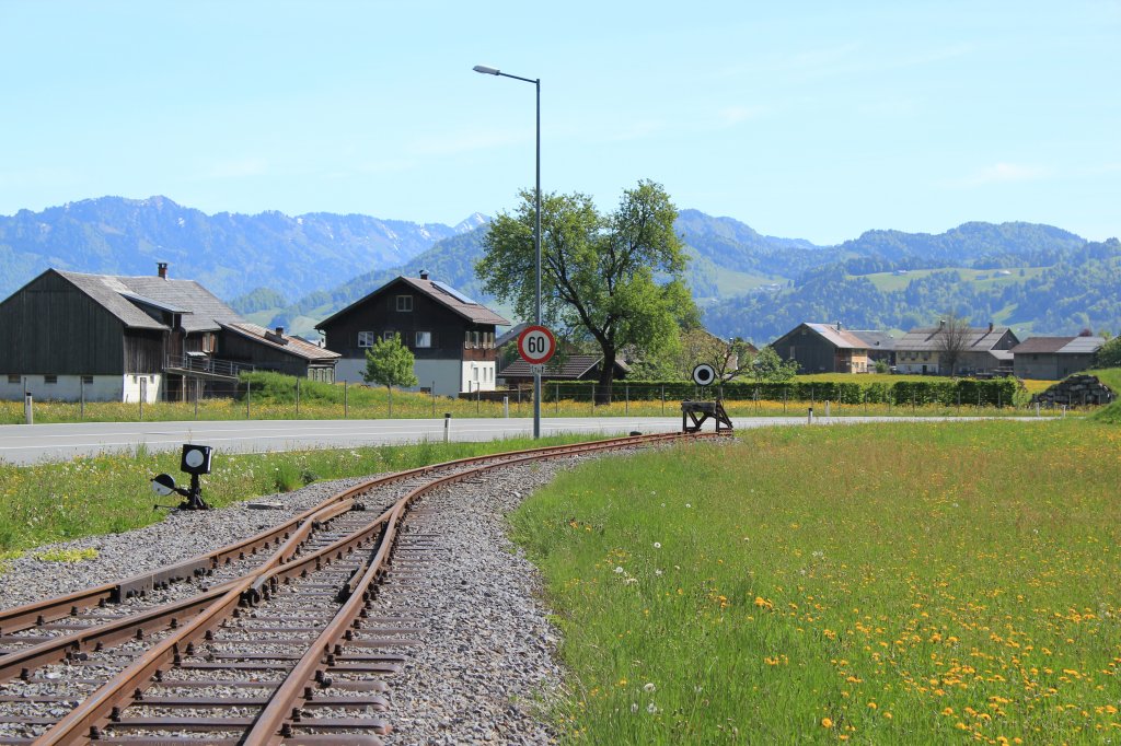 Durchs schöne Tal Richtung Bregenz gefahren, endet die Fahrt in Schwarzenberg Bf. leider schon, weiter talwärts sind die Gleise wohl für immer verschwunden, immerhin besteht die Hoffnung irgendwann in ferner Zukunft bis Andelsbuch fahren zu können.
