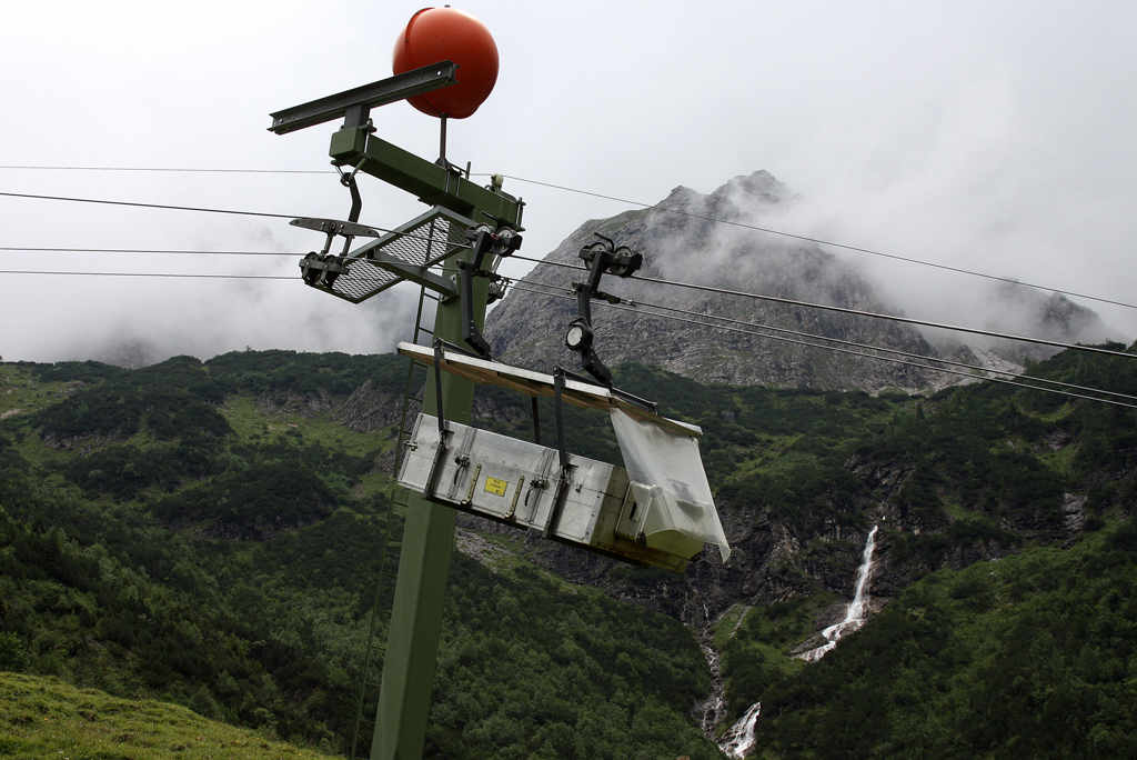 Talstation (1171m) der 1133m-langen Materialseilbahn zur Inneren Kuhgehrenalpe (1673m) im Kleinwalsertal. Die Bahn ist auch für den Tranport von 2 Personen zugelassen. 29.07.2011 Klaus Muhs