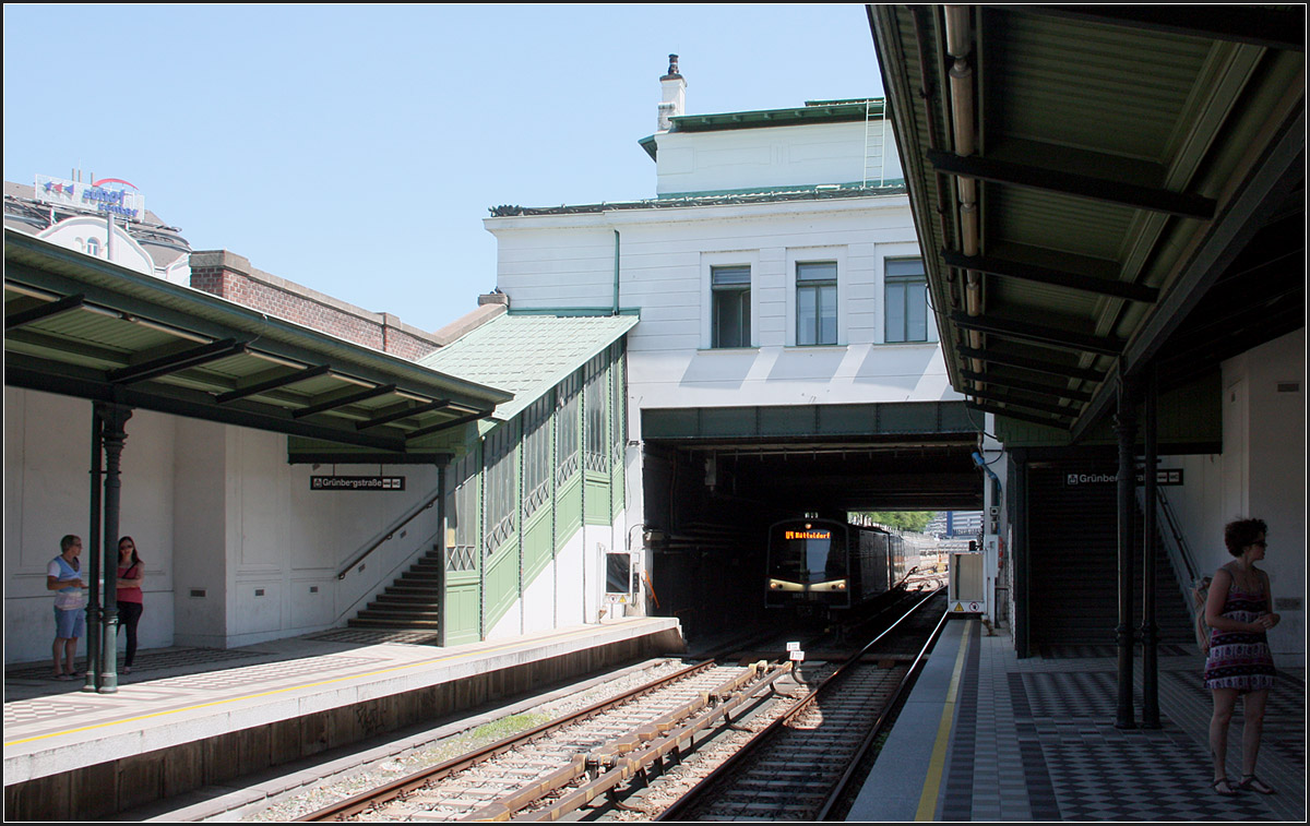 Nur an zwei Stationen entlang der U4 zeigen im Bahnsteigbereich noch weitgehend den originalen Zustand aus der Zeit der Stadtbahn. Neben der hier im Bild gezeigten Station Schönbrunn, wurde auch die Station Stadtpark entsprechend erhalten.