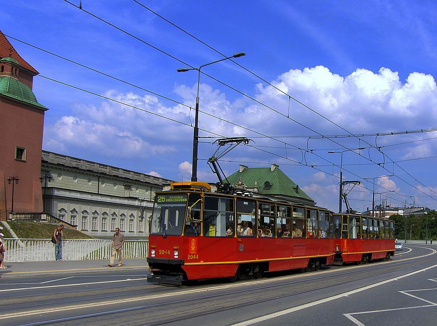Konstal Triebwagen Type 4NJ Nummer 838 der Straßenbahn Warschau als Linie T am 22.September 2002 in der Aleje Jerozolimskie. - Fotoscan. Karl Seltenhammer