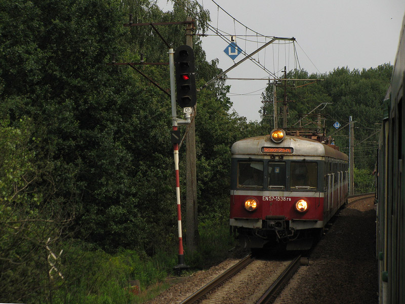 Blick nach Norden auf Stettin Hbf (Szczecin Glowny) am 23.9.11: Auf "Peron 1" steht der PKP-Triebwagen EN57-2020. Rechts im Hintergrund sieht man die Brücke, mit der die Gleise unmittelbar hinter dem Bahnhof den westlichen Oderarm überqueren.