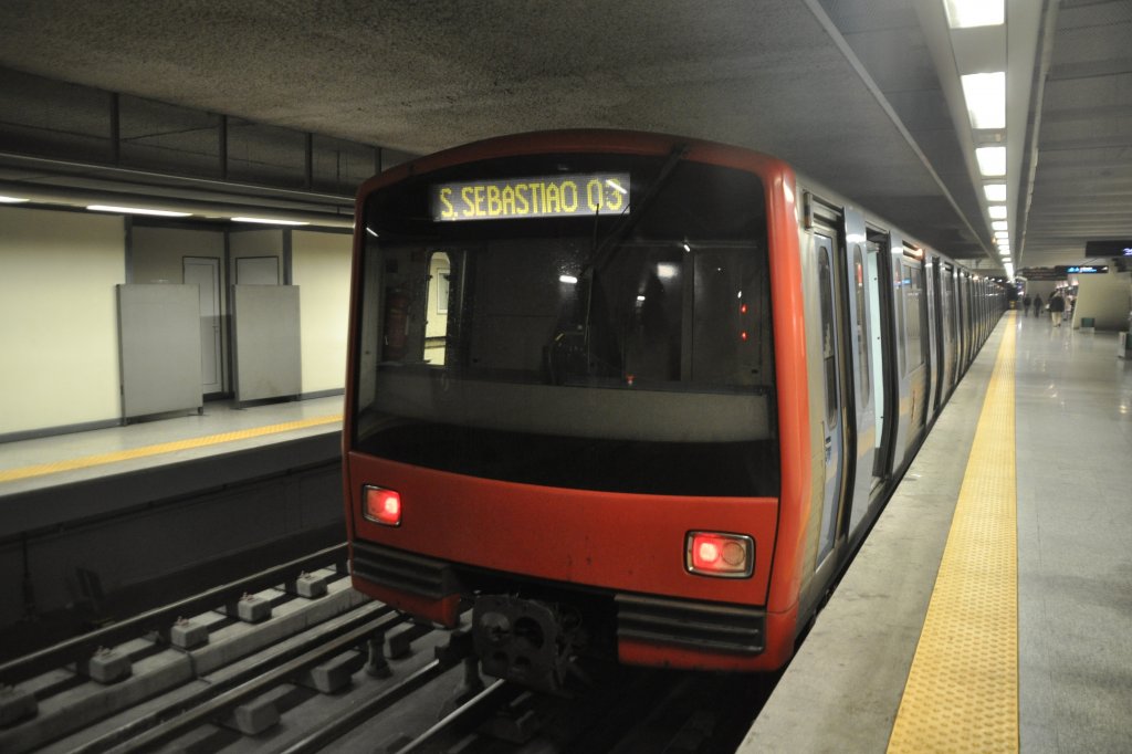 LISBOA (Distrikt Lisboa/Concelho Lisboa), 16.02.2011, Metrozug auf der Linha do Oriente (rote Linie) im Endbahnhof São Sebastião