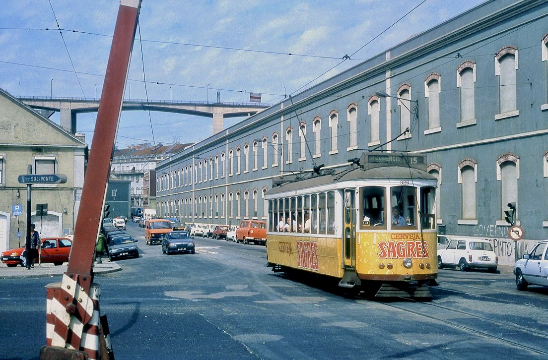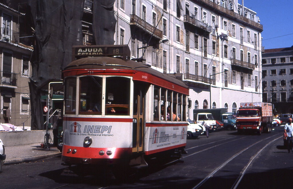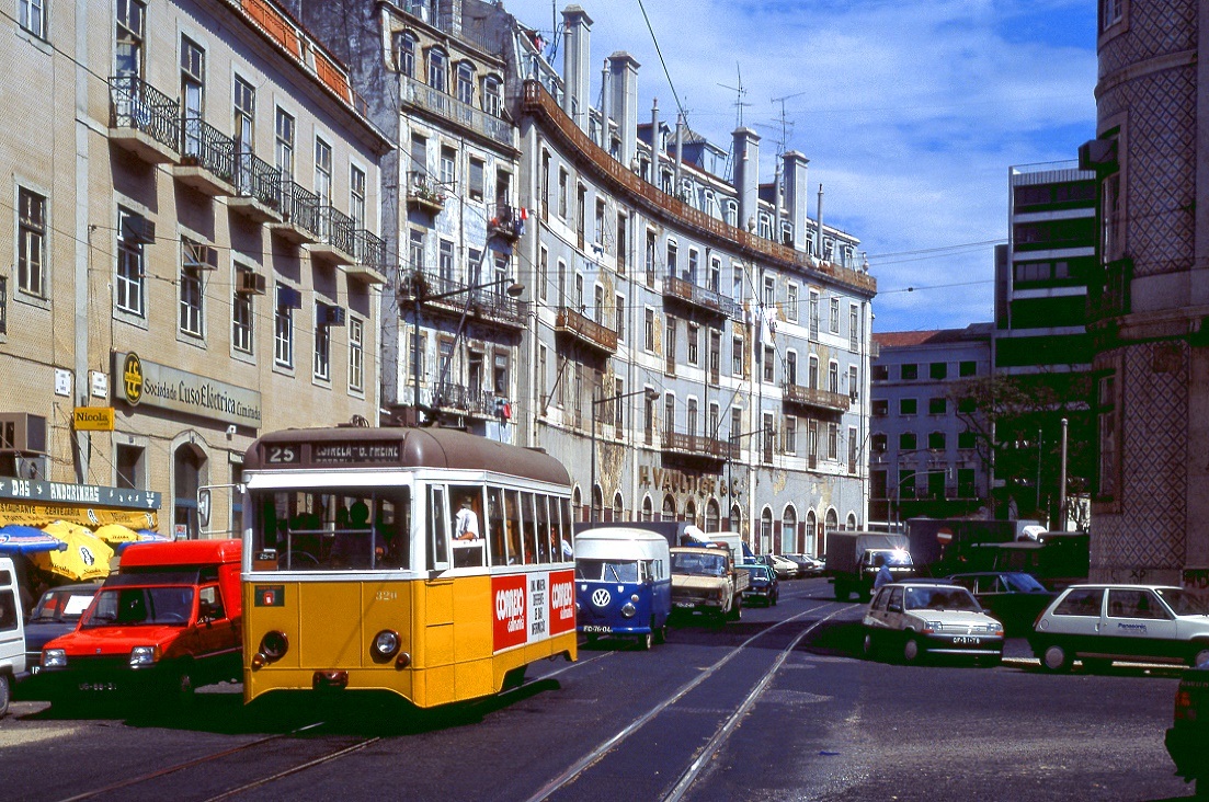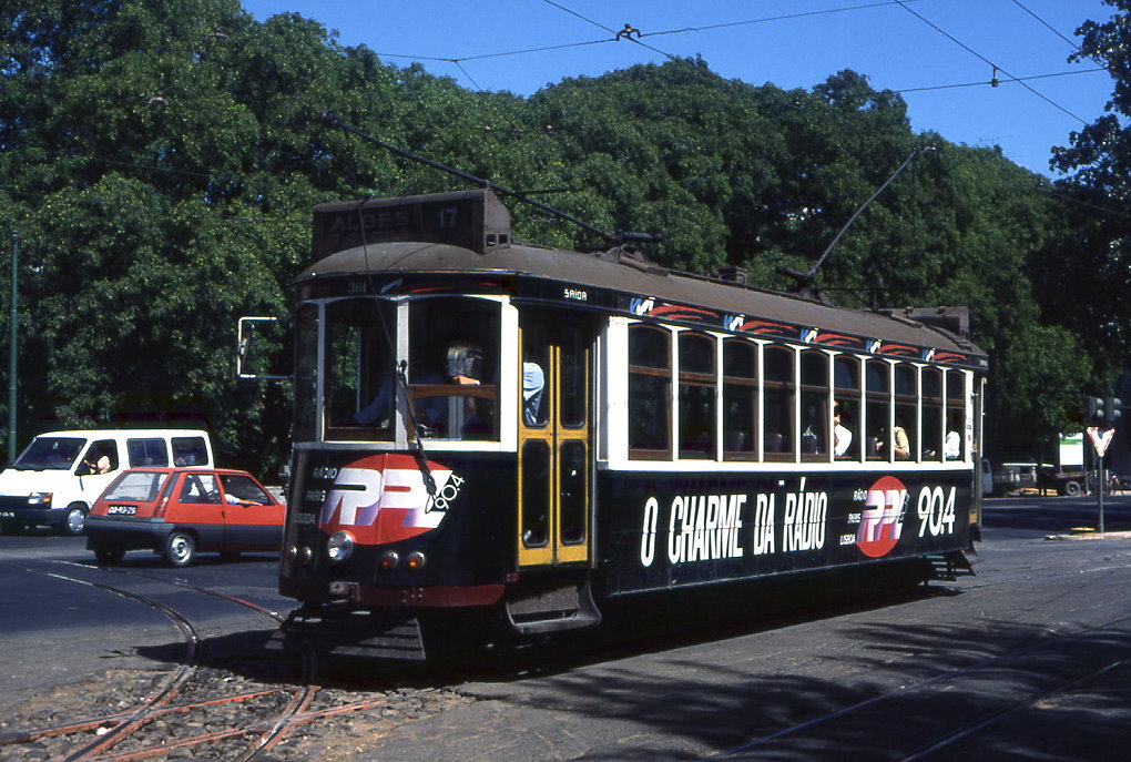 Lissabon Tw 361 am Knotenpunkt Santos, 09.09.1991. Die schweren Vierachser waren nur auf den langen, ufernahen Linien nach Belem im Einsatz Christian Wenger