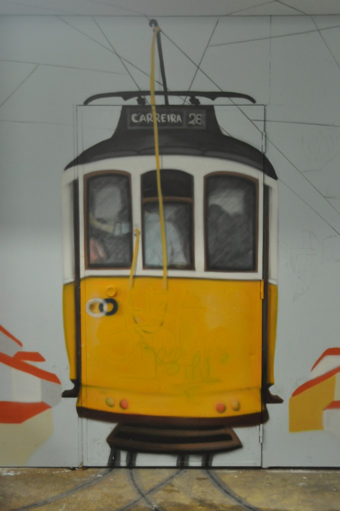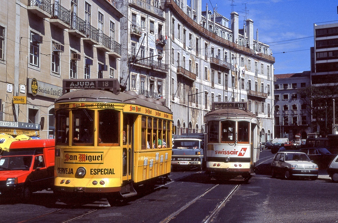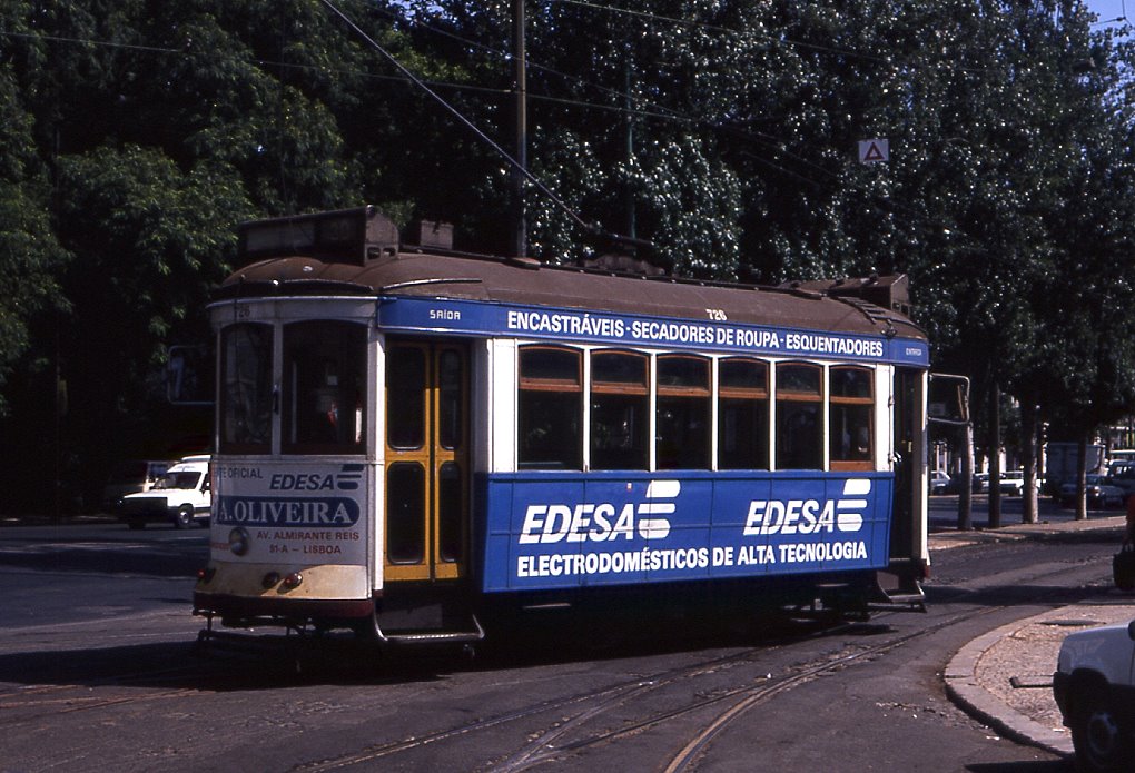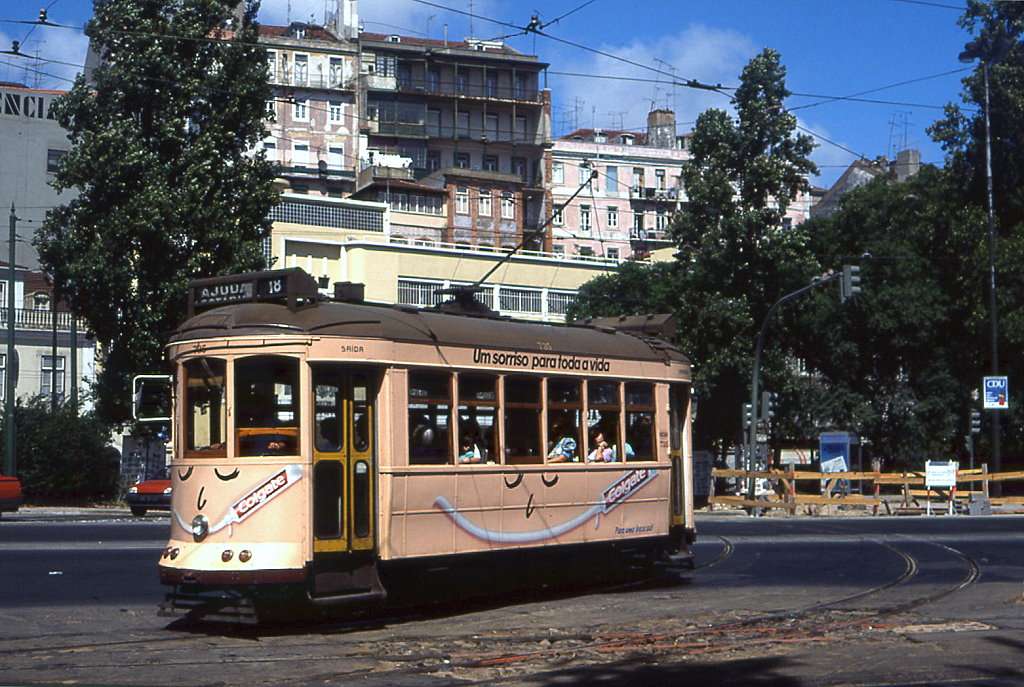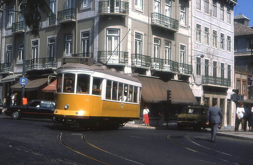 Lissabon Tw 361 am Knotenpunkt Santos, 09.09.1991. Die schweren Vierachser waren nur auf den langen, ufernahen Linien nach Belem im Einsatz Christian Wenger