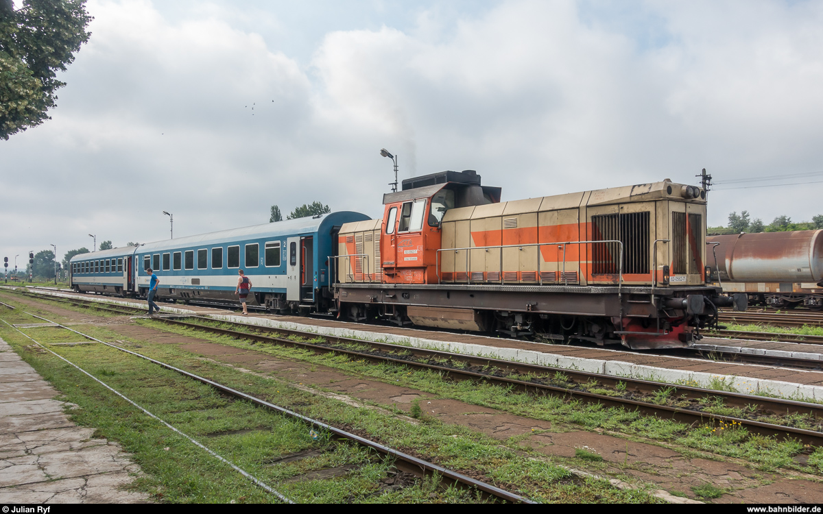 CFR 82 0562 wartet am 12. Juli 2018 mit IC 362  Ady Endre  Cluj-Napoca - Budapest Keleti am rumänischen Grenzbahnhof Episcopia Bihor auf die Weiterfahrt.