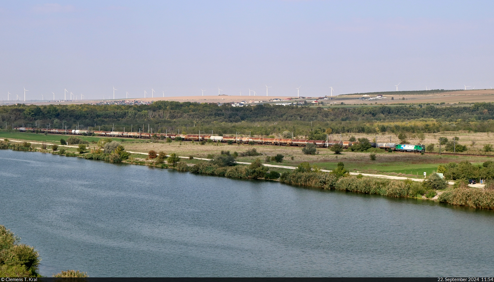 400 261-0 (91 53 0 400 261-0 RO-VTR) befördert eine lange Leine Kesselwagen entlang des Donau-Schwarzmeer-Kanals bei Medgidia (RO) Richtung Constanța (RO). 🧰 Vest Trans Rail S.R.L. 🕓 22.9.2024 | 11:54 Uhr