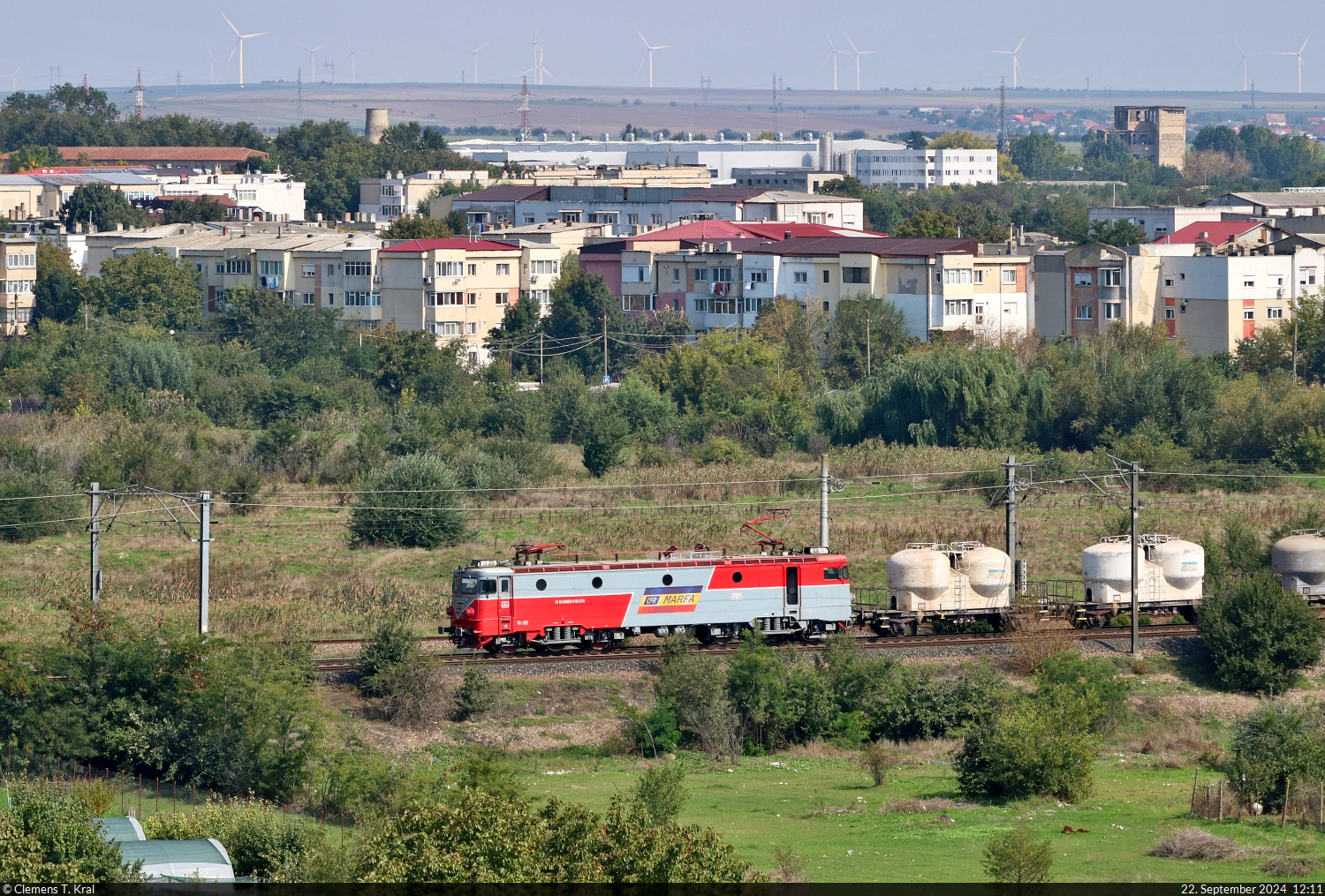 400 921-9 (91 53 0 400 921-9 RO-CFR) durchquert mit Zementsilowagen die Stadt Medgidia (RO) Richtung Fetești (RO). Das Foto entstand von einem Aussichtspunkt am Donau-Schwarzmeer-Kanal. 🧰 CFR Marfă S.A. 🕓 22.9.2024 | 12:11 Uhr
