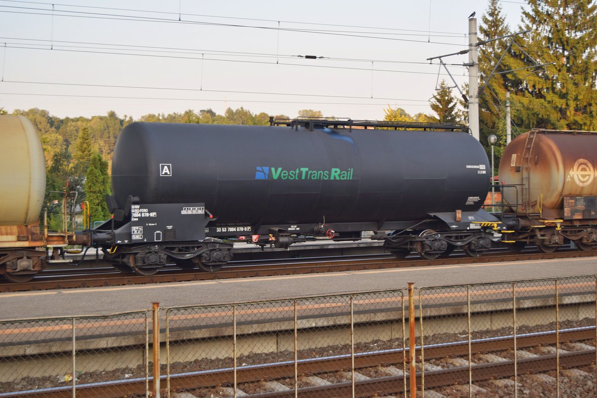 Kesselwagen der Vest Trans Rail in Bahnhof Campina am 01.10.2017