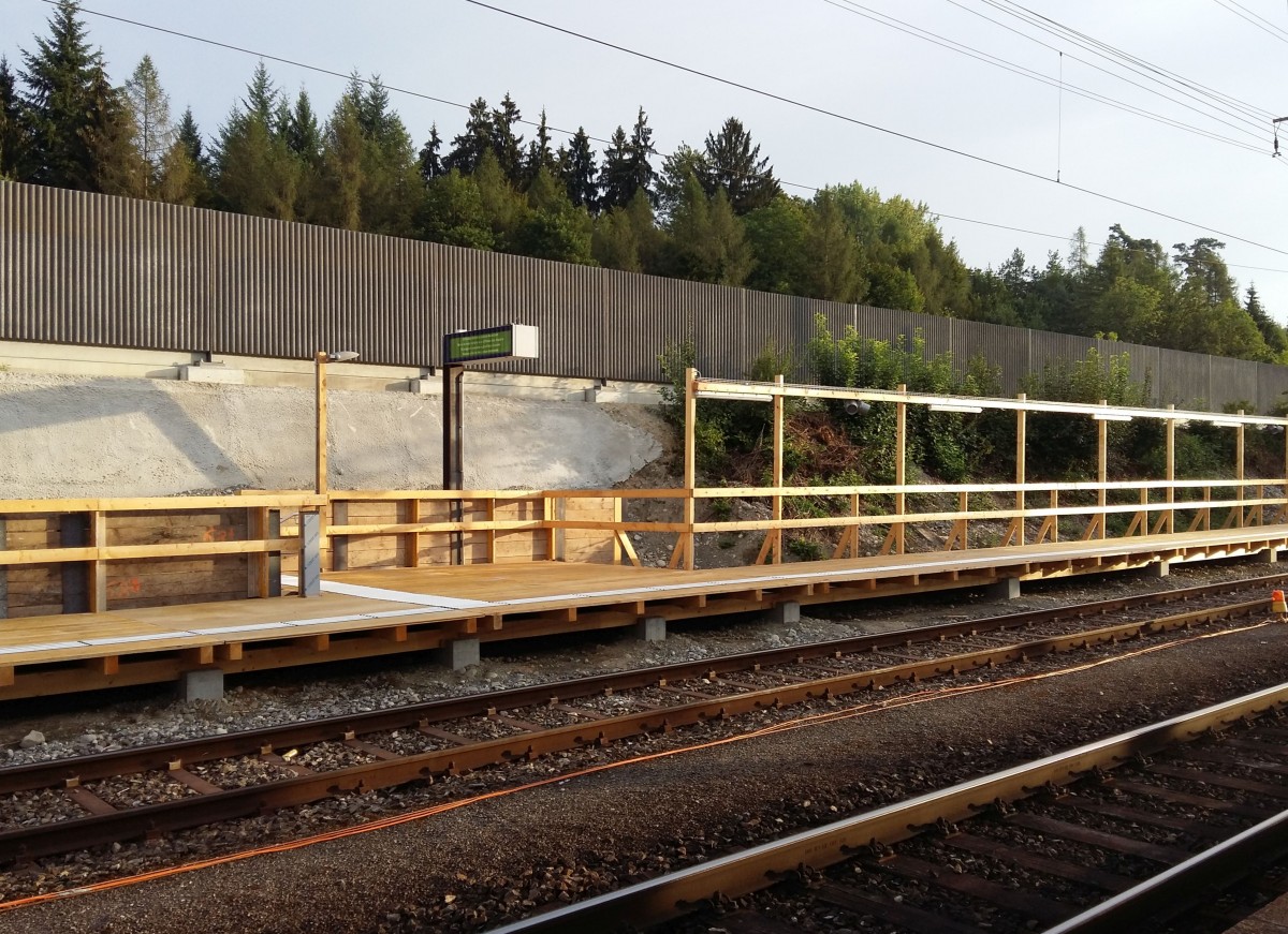 In Othmarsingen wurde für den Umbau ein Hilfsperron (Bahnsteig) an Gleis 6 gebaut. Mit Beleuchtung Zugzielanzeiger etc. 4.8.2015