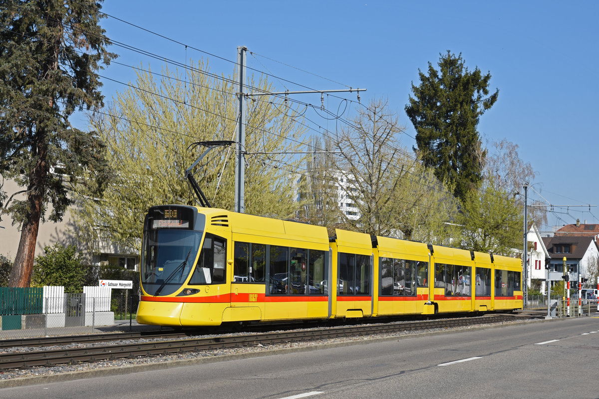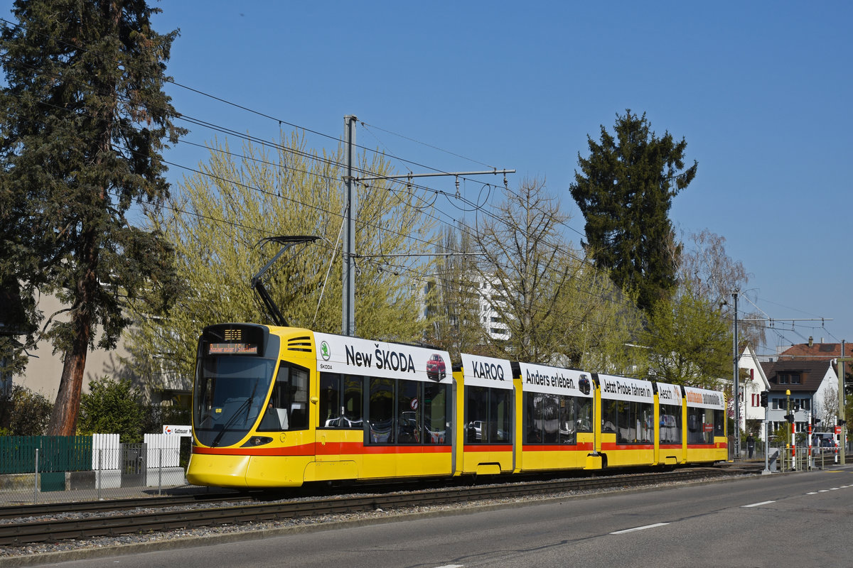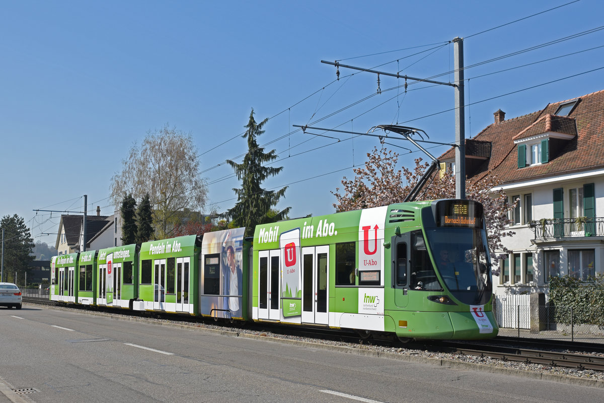 Be 6/10 Tango 162 mit der U-Abo Werbung, auf der Linie 10, fährt zur Haltestelle Bottmingermühle. Die Aufnahme stammt vom 07.04.2020.