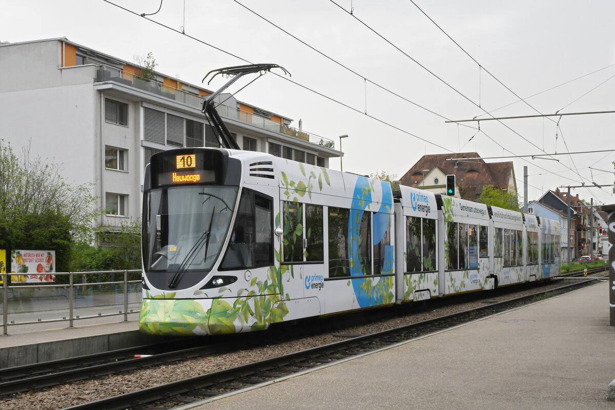 Be 6/10 Tango 186 mit der Primero Energie Werbung, fährt am 08.04.2024 wegen einer Grossbaustelle am Steinenberg nur bis zur Heuwaage. Hier bedient der Wagen die Haltestelle Binningen Oberdorf.