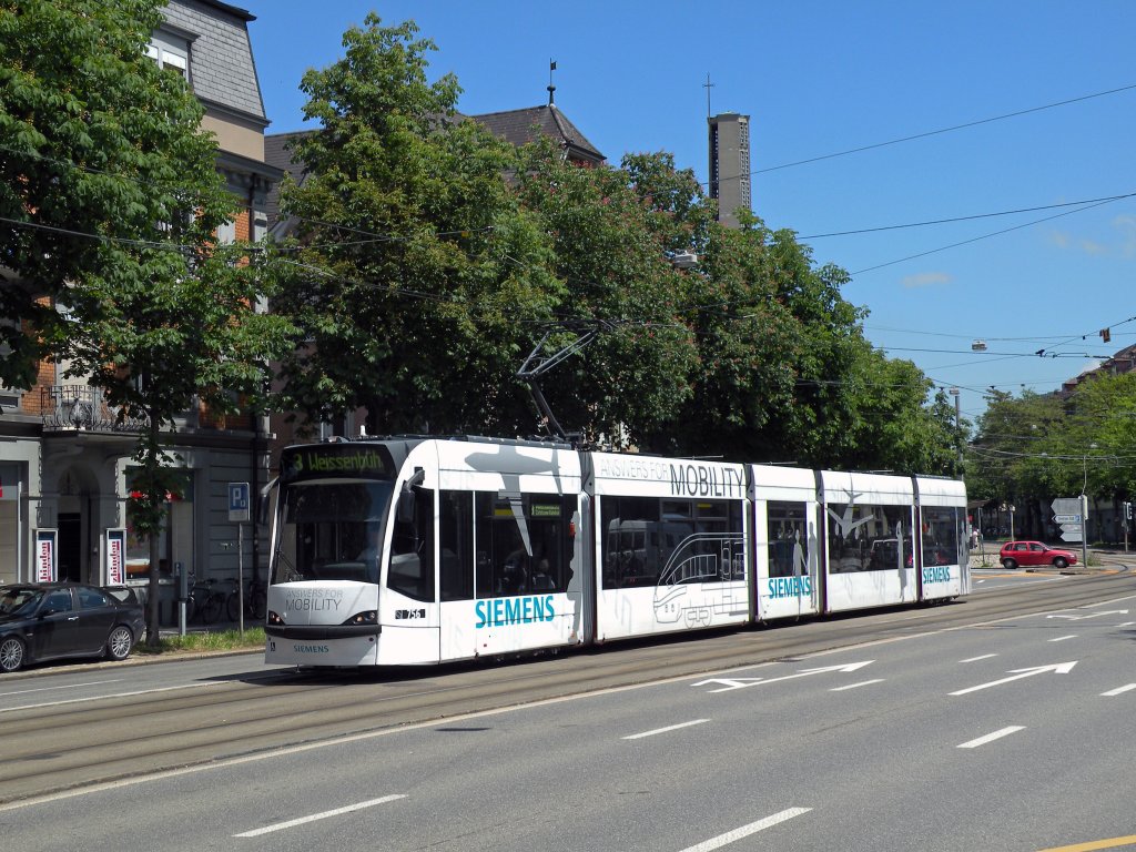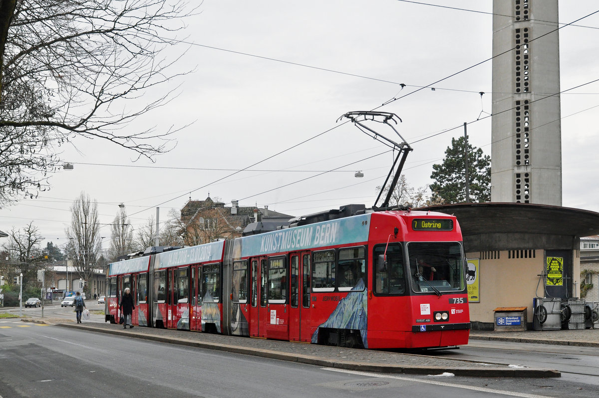 Be 4/6 Vevey Tram 735 mit einer Werbung für eine Hodler Ausstellung im Kunstmuseum Bern, auf der Linie 7, bedient die Haltestelle Burgernziel. Die Aufnahme stammt vom 19.12.2018. Markus Wagner
