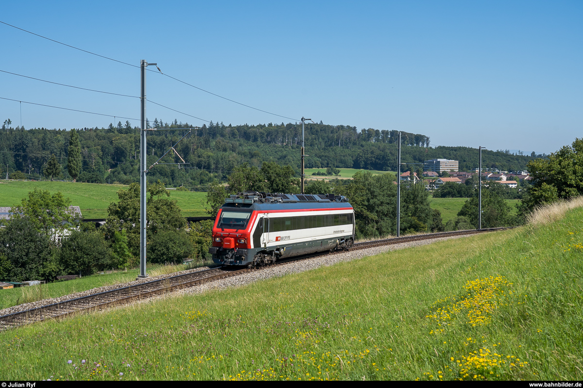 Ein aussergewöhnlicher Gast durchfährt den Bahnhof Köniz: Die ELL/SBB Cargo International 193 209 führte am 25. Juni 2015 für BLS Cargo Versuchsfahrten auf der Strecke nach Schwarzenburg durch. Die Strecke weist die grösste Steigung und den engsten Kurvenradius auf dem BLS Netz auf und wurde deshalb schon bei den Re 486 als Versuchsstrecke gebraucht. BLS Cargo hat im März bekannt gegeben, bei Siemens 15 Mehrsystemlokomotiven Vectron bestellt zu haben. Julian Ryf
