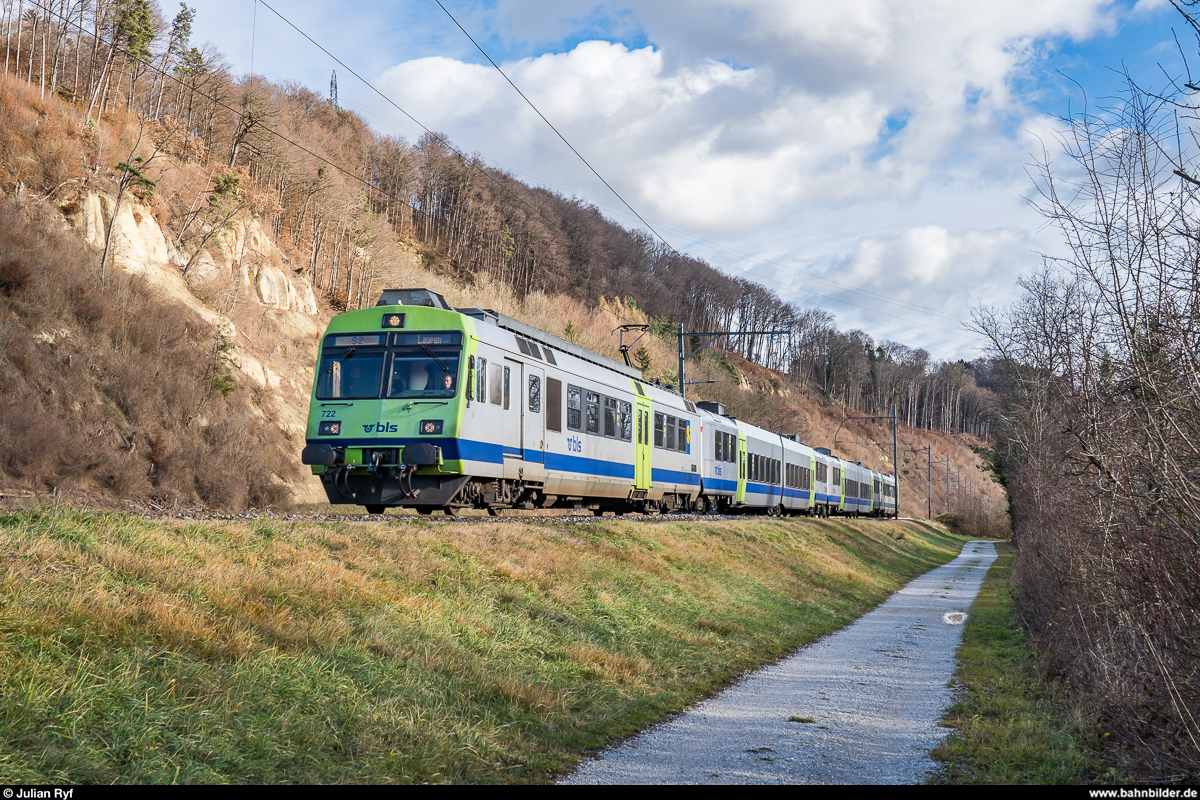 BLS RBDe 565 722 am 14. Dezember 2019 als S2 zwischen Neuenegg und Laupen. Julian Ryf