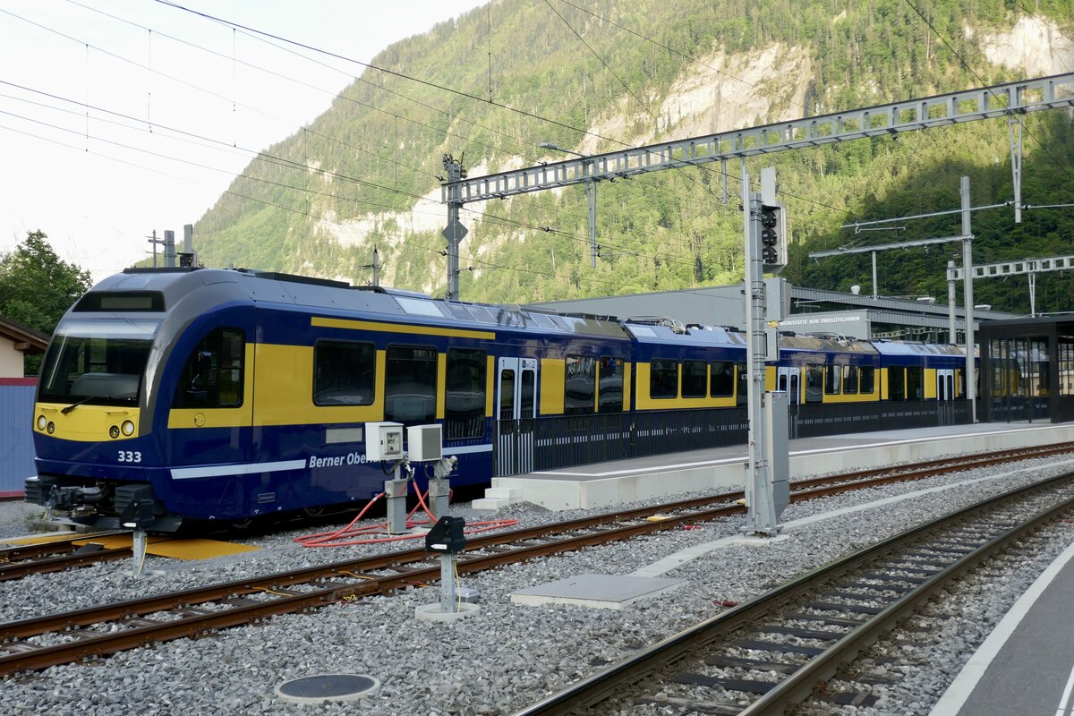 Die drei ABeh 4/4 II 311 "Grindelwald", 312 "Interlaken" und 313 "Lauterbrunnen" die am 19.9.25 nach der Abschiedsfahrt vor dem Depot Zweilütschinen aufgestellt wurden. Stefan H.