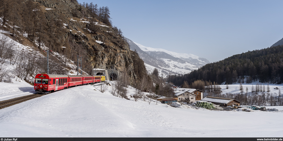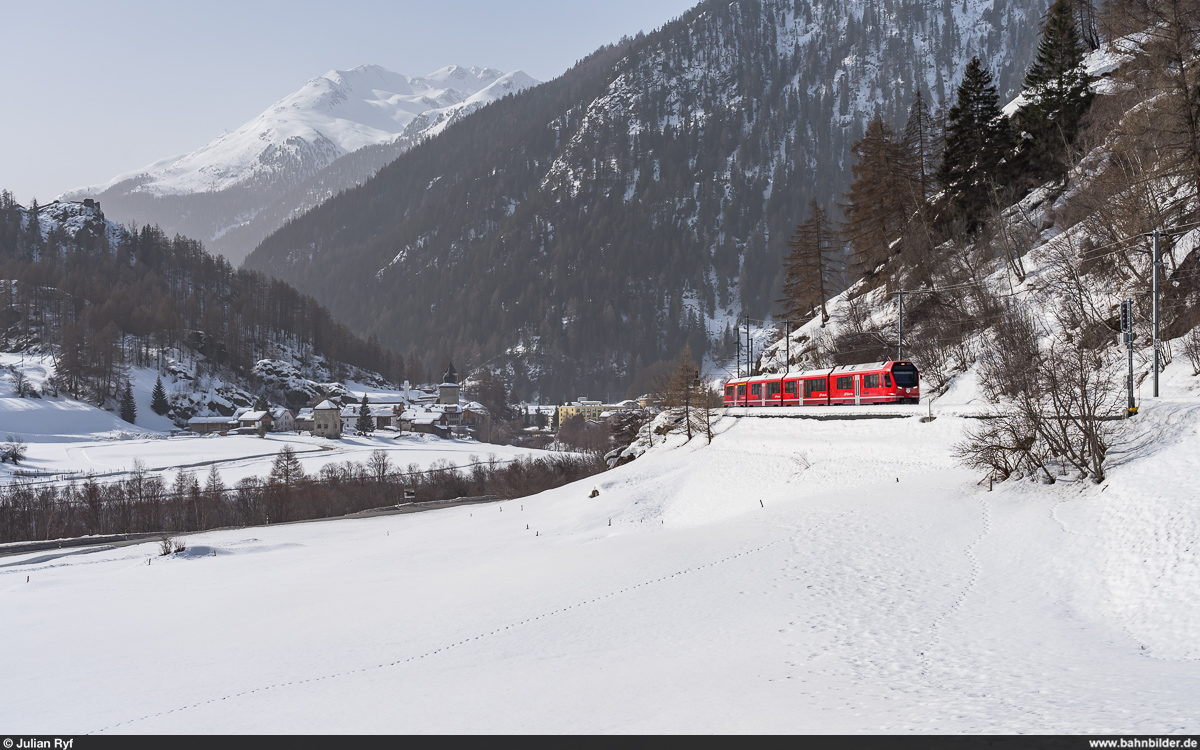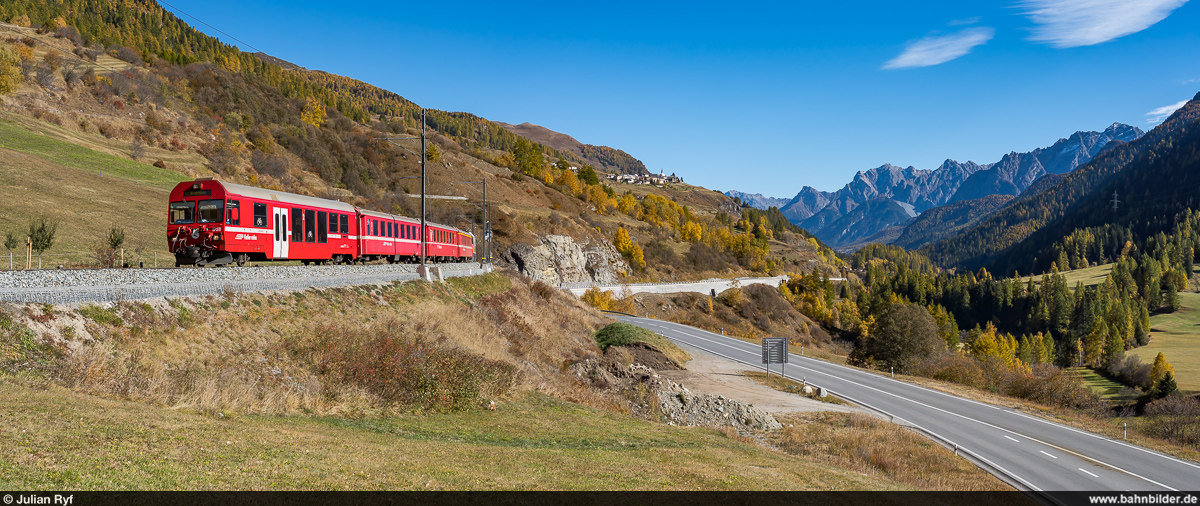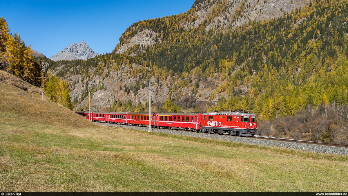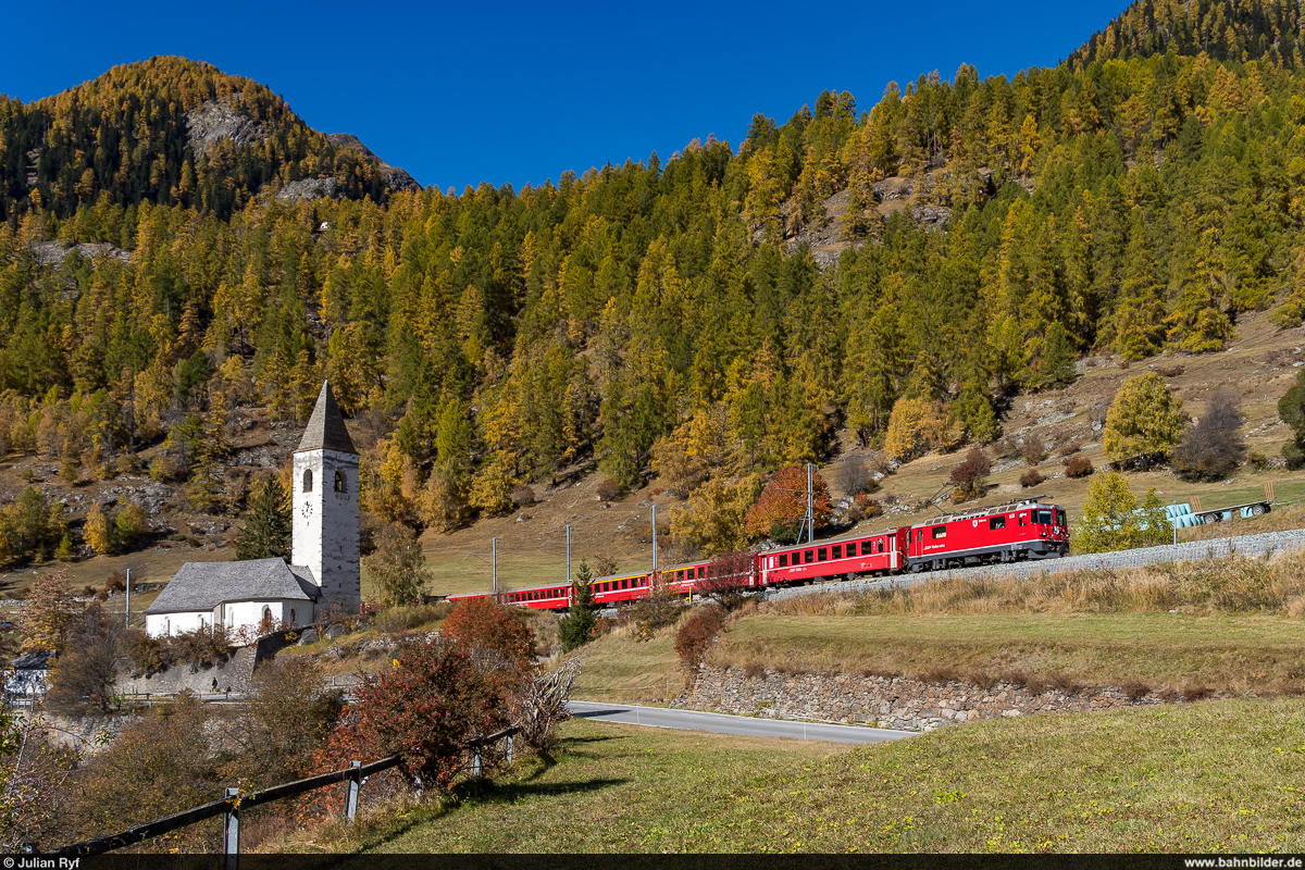 RhB Ge 4/4 II 620 "Zernez" ist am 22.11.2020 mit dem Engadin Star RE 1335 von Landquart nach St. Moritz unterwegs und wurde hier kurz nach Susch aufgenommen. Yannik Gartmann