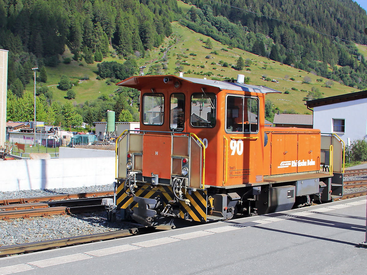 1996 waren auch noch die Ge 6/6 I auf der Engadiner Strecke zum Einsatz, jeden Montag beförderten sie ein Güterzugpaar nach Scuol-Tarasp. Im März 1996 kam die Ge 6/6 I 615 zum Einsatz, hier bei Rangierarbeiten in Lavin. Horst Lüdicke