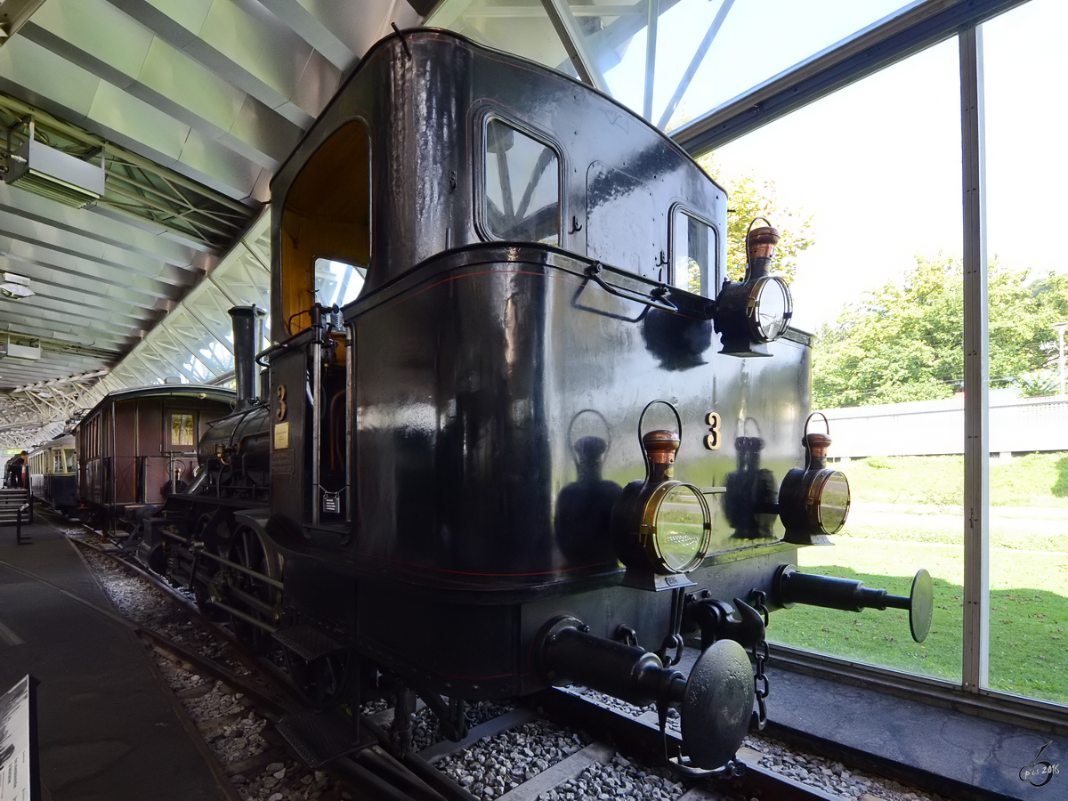 Die Dampflokomotive Ed. 3/3 "Langnau" mit der Betriebsnummer 3 der Emmental Bahn im Verkehrshaus der Schweiz (Luzern, September 2011)
