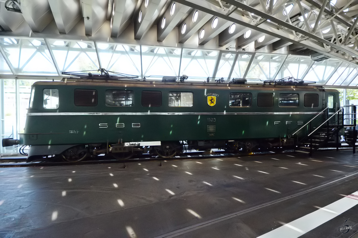 Die Elektrolokomotive Ae 6/6 11413 der SBB ausgestellt im Verkehrshaus in Luzern am 21.05.2016