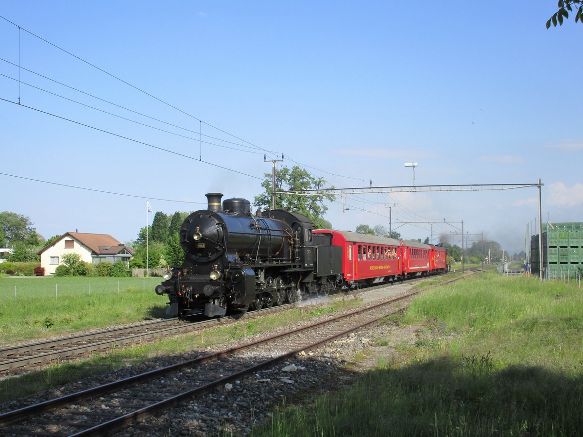 Am Sonnatag, 6. Mai 2018 fuhr die Ec 3/5 Nr. 3 des Vereins Historische Mittelthurgau-Bahn und die Gottharddampflok C 5/6 Nr. 2969 des Vereins Eurovapor mit dem Dampfextrazug regelmässig von Arbon nach Romanshorn und wieder zurück.