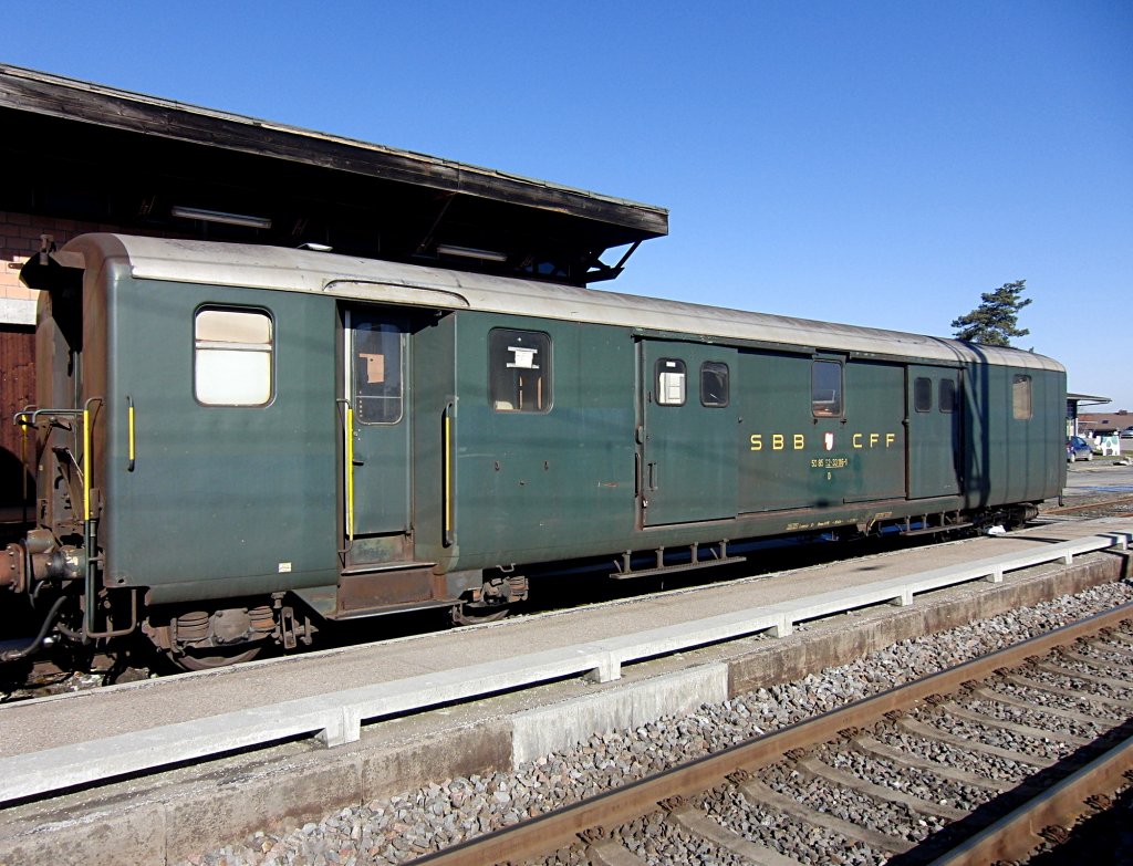 SBB Gepäckwagen 50 85 92-33116-1 abgestellt im Bahnhof Siegershausen (16.03.2013).