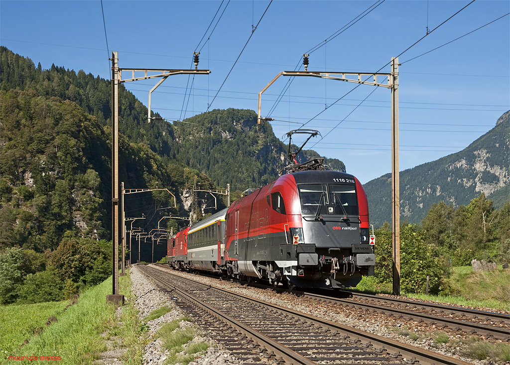 Ein FS Trenitalia ETR 610 als EC 17 errecht die Dazio Grande und hier den 354 Meter langen Dazio Tunnel.