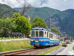 Aussergewöhnlich kurz zeigt sich dieser SSIF Ferrovia Vigezzina Treno Panoramico 53 von Domodossola nach Locarno zwischen Tegna und Ponte Brolla: statt vierteilig waren nur die beiden Triebwagenköpfe ohne Zwischenwagen unterwegs.