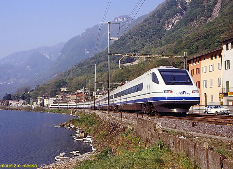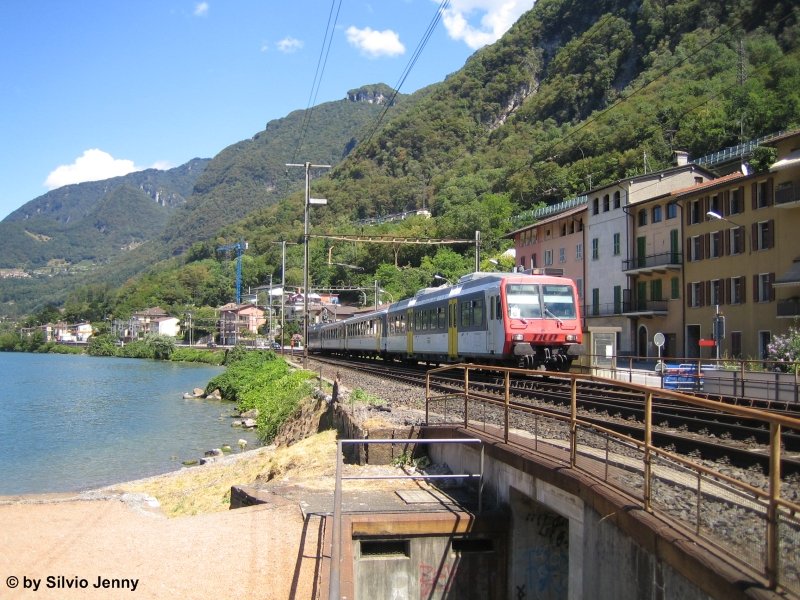 Melide, am Bahnhof. Melide, am Luganersee, Kanton Tessin, ist bekannt für "Swissminiatur", ein Freilichtmuseum, das eine miniaturisierte Schweiz präsentiert - 26.06.2011 Olivier Monnet