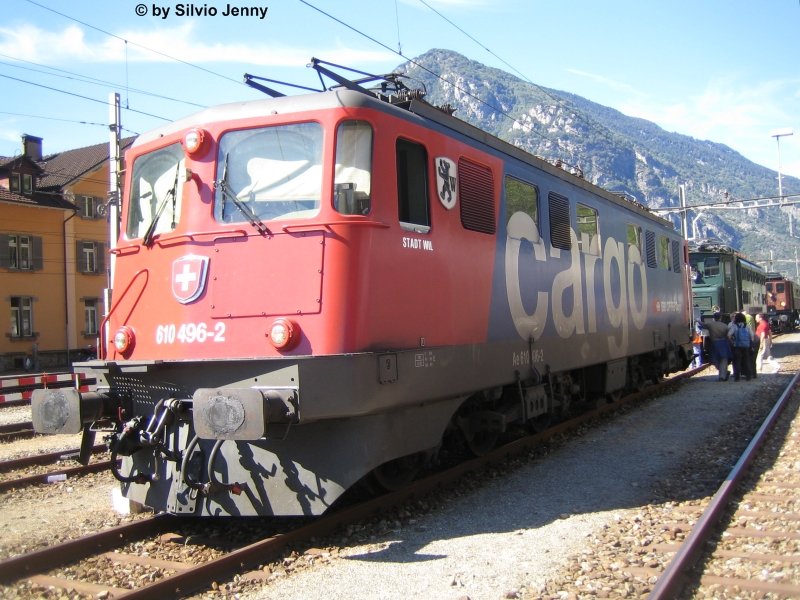 Die einzige verbliebene, historische Ae 3/5 10217 stand am 8.9.07 in Biasca ebenfalls wegen des Gotthardjubiläums. Denn diese Loks bildeten jahrelang das Rückgrat der Autozüge durch den Gotthardtunnel, die allerdings mit der Eröffnung des Gotthardstrassentunnels eingestellt wurden. Aber die alten Autozugrampen wurden glücklicherweise noch nicht zurückgebaut, denn als im Jahre 2001, wo die Brandkatastrpohe und 2006 wo bei Amsteg der Felssturz niederging, war die Autobahn lange Zeit gesperrt, und man war froh, konnte man diesen Verkehr über die Schiene abwickeln. Sonst würde aber der Autozugbetrieb am Gotthard nicht mehr rentieren. Silvio Jenny