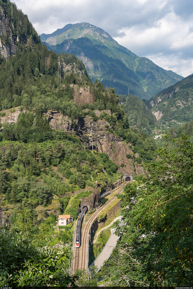 Wie sich die Zeiten ändern: vor ein paar Jahren hätte ich wohl die Nase gerümpft und den in Airolo durchfahrenden ICN nicht fotografiert, heute freue ich mich, dass ich zwischen all den "Giruno" Zügen einen ICN fotografieren kann: Der SBB RABDe 500 006 "Johanna Spyri" passiert als IC 2 10865 auf dem Weg von Zürich HB nach Lugano den Höhepunkt seiner Fahrt in Airolo und wird nun durch die Leventina seinem Ziel entgegen fahren.