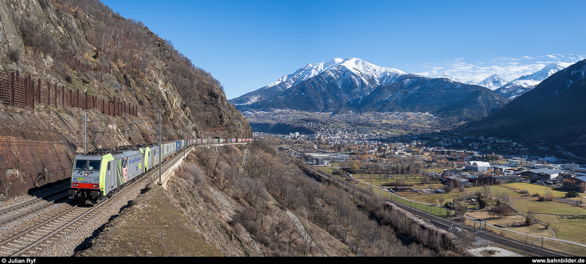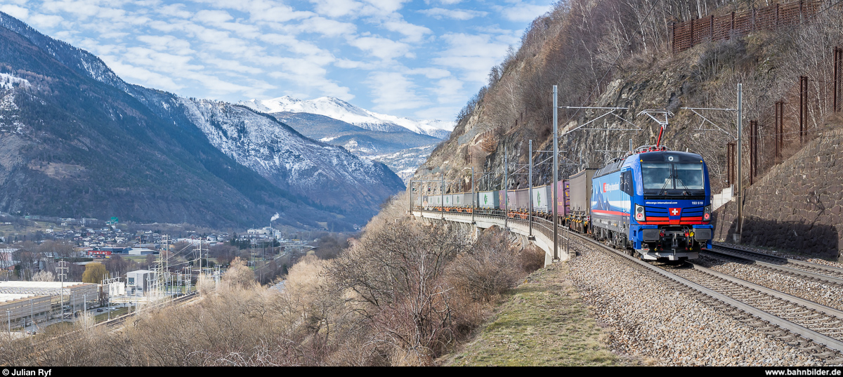 Die erst wenige Wochen alte 193 519 im Einsatz als Schiebelok am 15. Februar 2020 an der Lötschberg-Südrampe kurz nach Brig. Julian Ryf