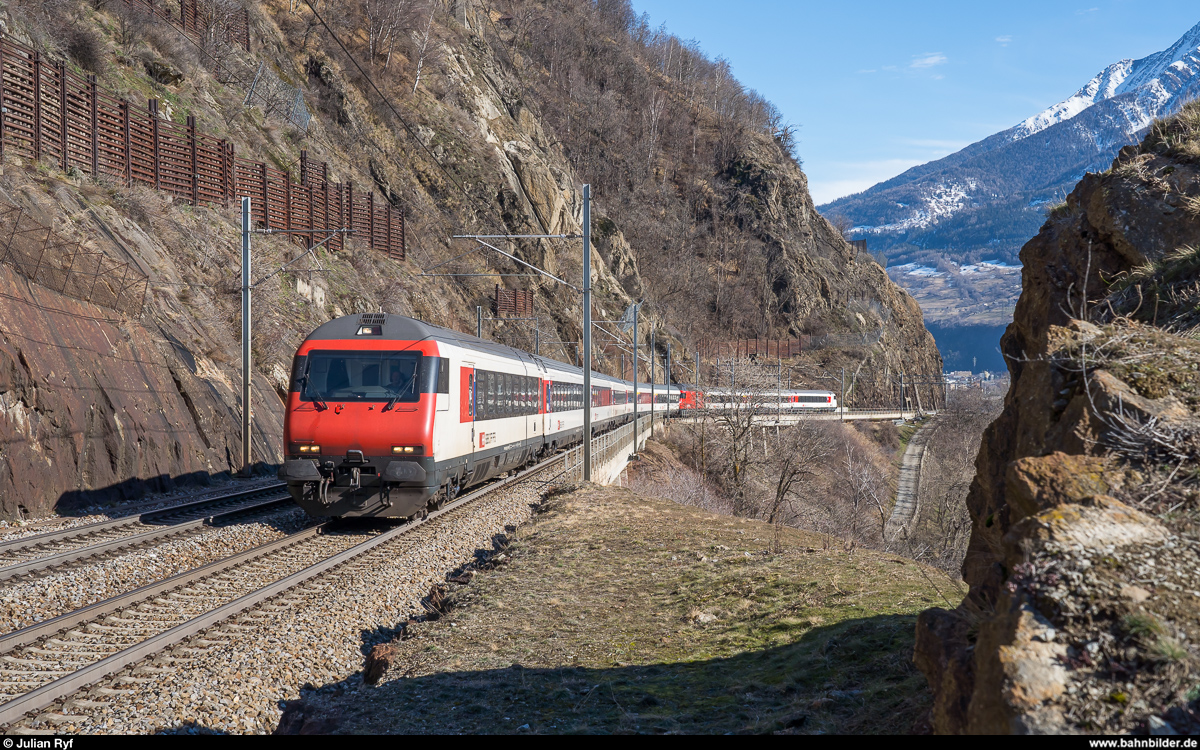 Re 460 116 mit IC 6 am 15. Februar 2020 bei Gamsen.