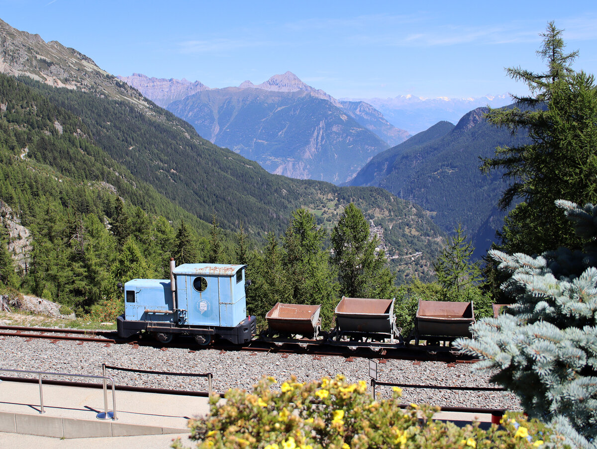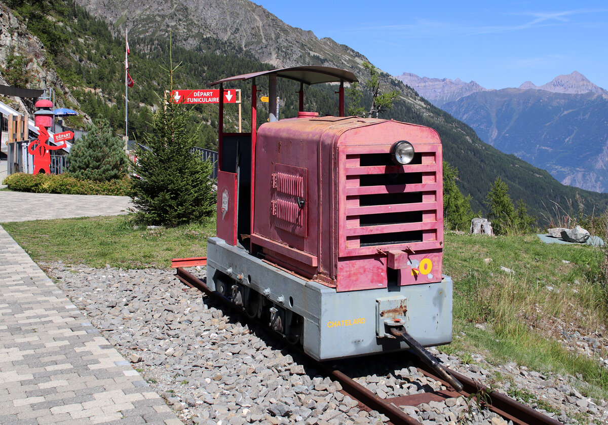 Die Lok des Panoramic Train setzt um, damit nachher die Fahrt Richtung Lac d'Emosson erfolgen kann. Das Foto wurde vom Kinderspielplatz aus gemacht. Les Montuires, 25.8.2025 Markus Gmür