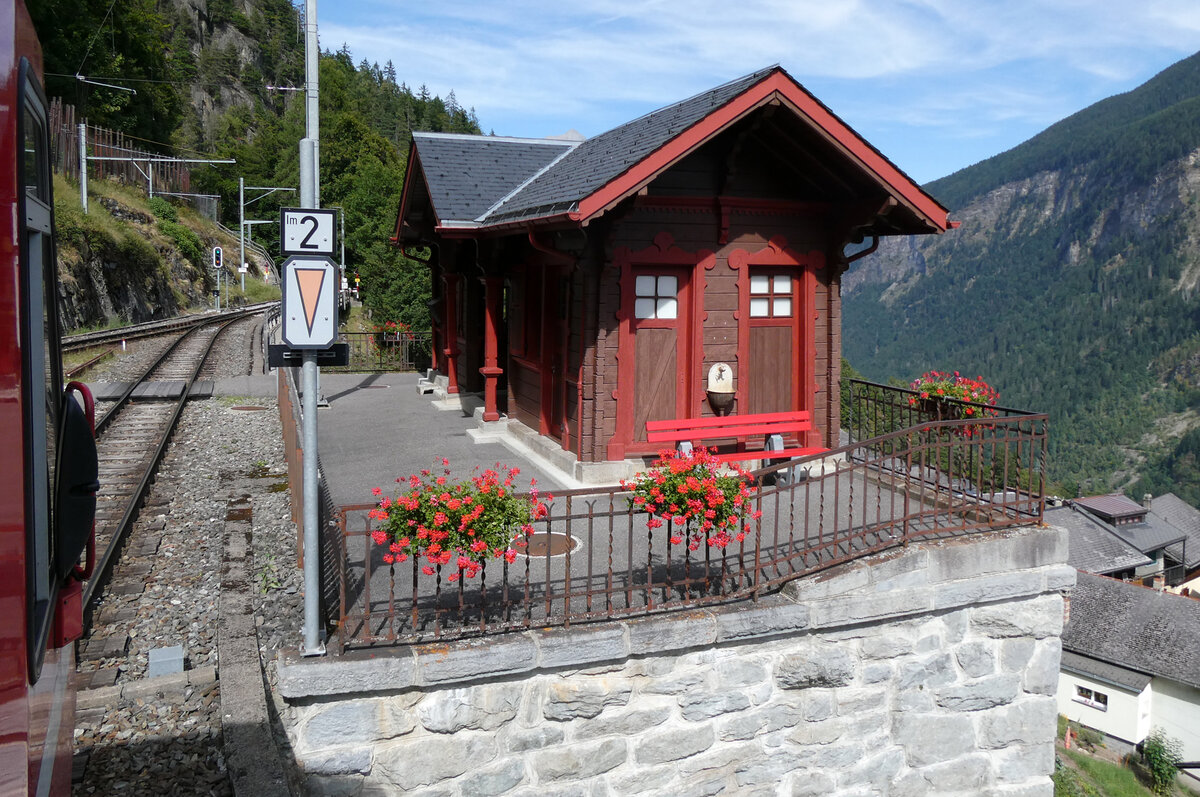 Was für eine Lage für ein Bahnhofgebäude! Die Haltestelle Le Trétien zwischen Finhaut und Martigny liegt direkt am Hang. Martigny, 25.8.2025 Markus Gmür