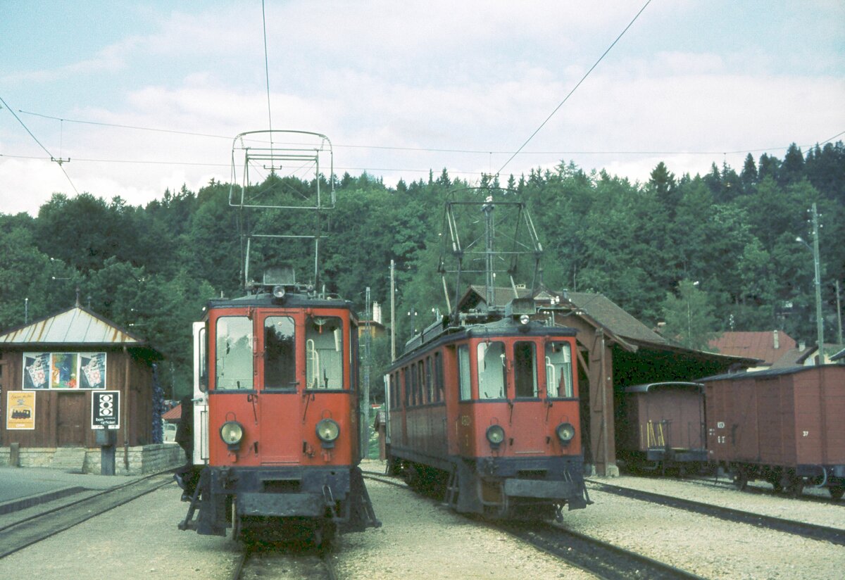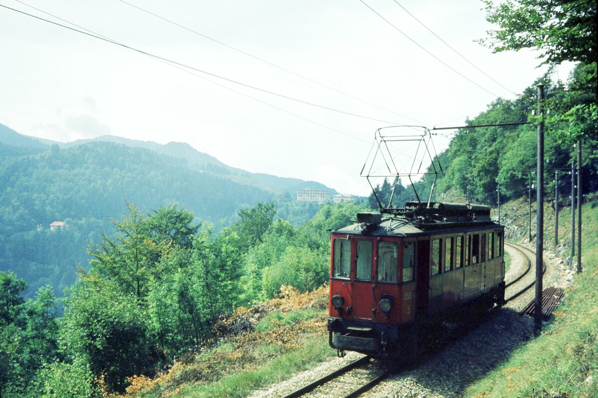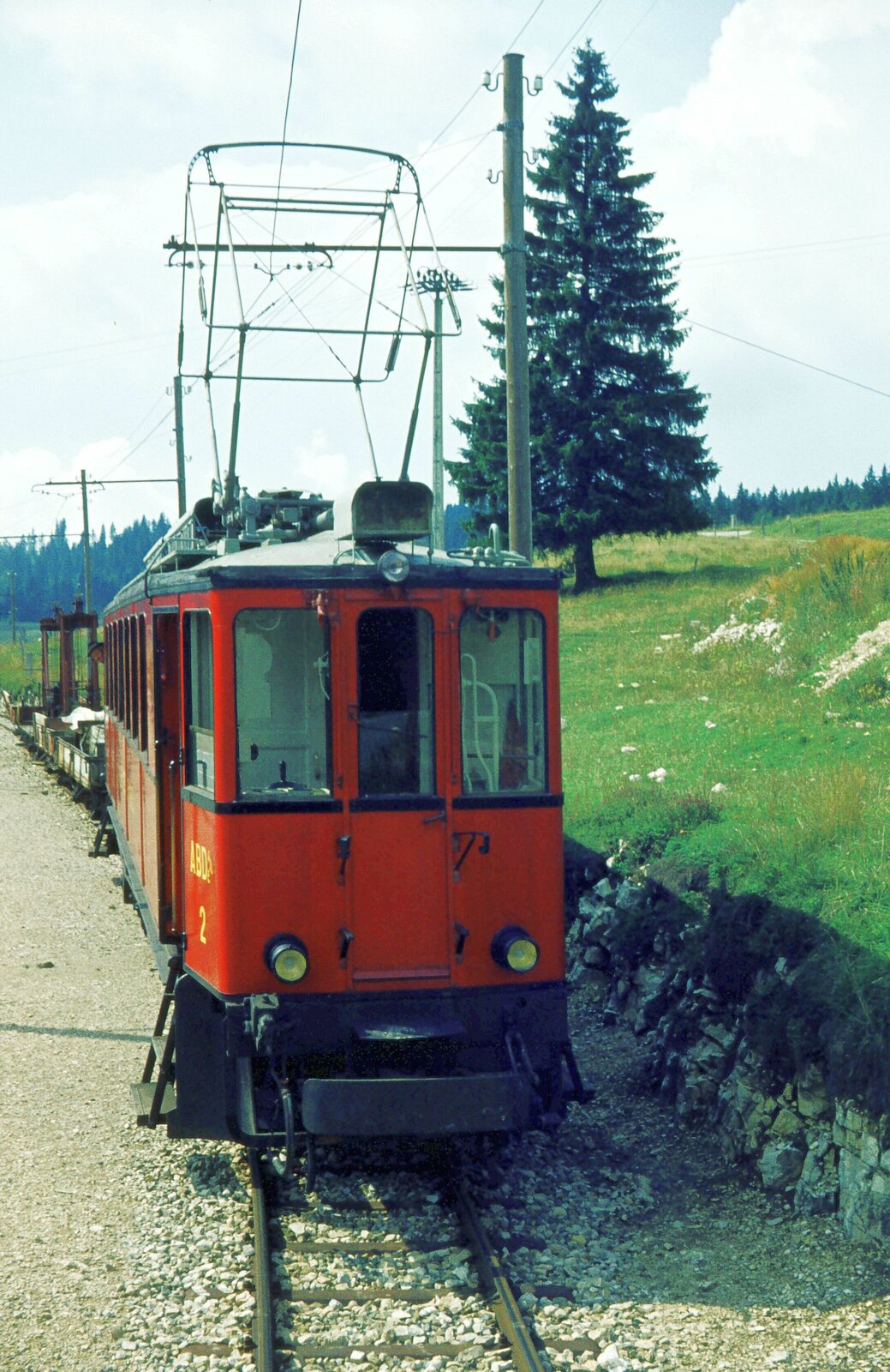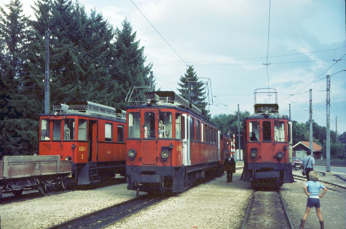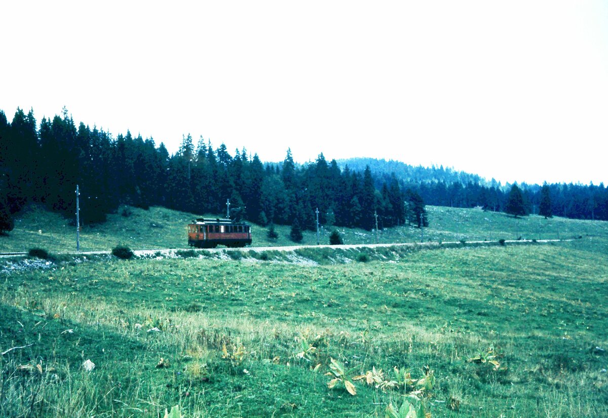 NStCM__Tw 'ABDe 4/4' Nr. 3 von 1924__09-1976. Die teils asynchrone Struktur zwischen der Tw.-Nummerierung und deren Baujahren rührt wohl von der Übernahme von 2 Tw des seinerzeitigen französischen Betreibers MLC (ex CFEJ) des Streckenteils La Cure-Morez durch die NStCM 1961 her. So werden die Baujahre der Tw 2 und 3 mit 1936 bzw. 1924 angegeben, während für die höheren Nummern die Baujahre 1916/18 angegeben werden. Quelle: EGB https://eingestellte-bahnen.ch/category/schmalspur/ Klaus-Erich Lisk