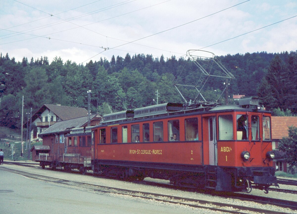 NStCM__Das typische Triebwagen-Gesicht ab 1916 für viele Jahrzehnte auf der Meterspurstrecke Nyon - St. Cergue - La Cure (Französisch-Schweizer Grenze quer durch den Bhf.) - Morez. Das frz. Teilstück wurde 1958 eingestellt. Tw 3 Bj. 1916. Klaus-Erich Lisk