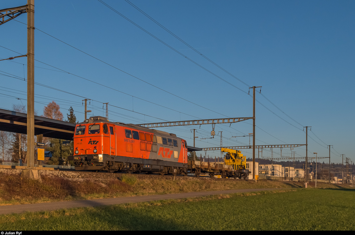 Der Roter Doppelpfeil "Churchill" (SBB RAe 4/8 1021) fuhr am 15.1.17 um etwa 13.15 Uhr durch den Bahnhof Bassersdorf, im Kanton Zürich. Der Churchill-Pfeil fuhr in Richtung Zürich.