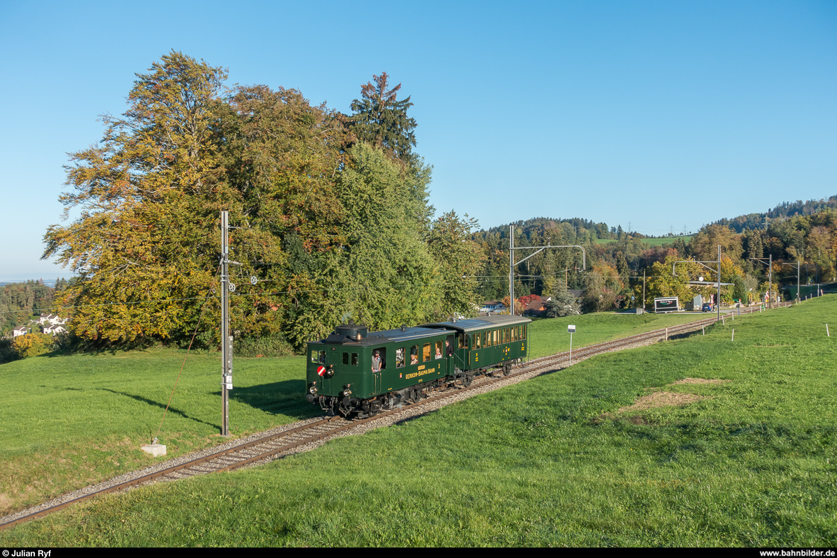 DVZO Fahrzeugtreffen 2017. DVZO Ed 2/4 2 "Hinwil" am 15. Oktober 2017 mit einem Zug von Hinwil nach Bauma kurz vor der Station Ettenhausen-Emmetschloo. Julian Ryf