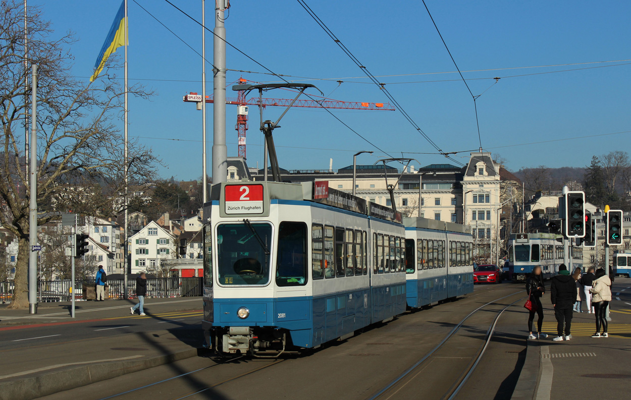 Be 4/6 2081 zwischen Bellevue und Bürkliplatz in Zürich am 15.02.2023.