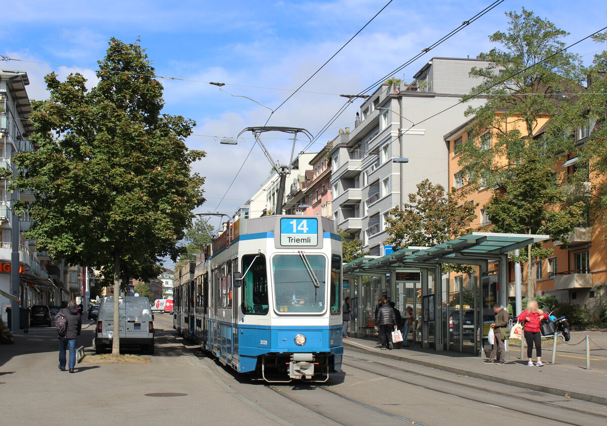 Be 5/6 3043 zwischen Guggachstrasse und Schaffhauserplatz am 06.10.2016. Cobras sind auf der Linie 7 die Ausnahme, hier verkehren vor allem Sänfte-Pony-Züge (Be 4/8 + Be 2/4). Thomas Schürch