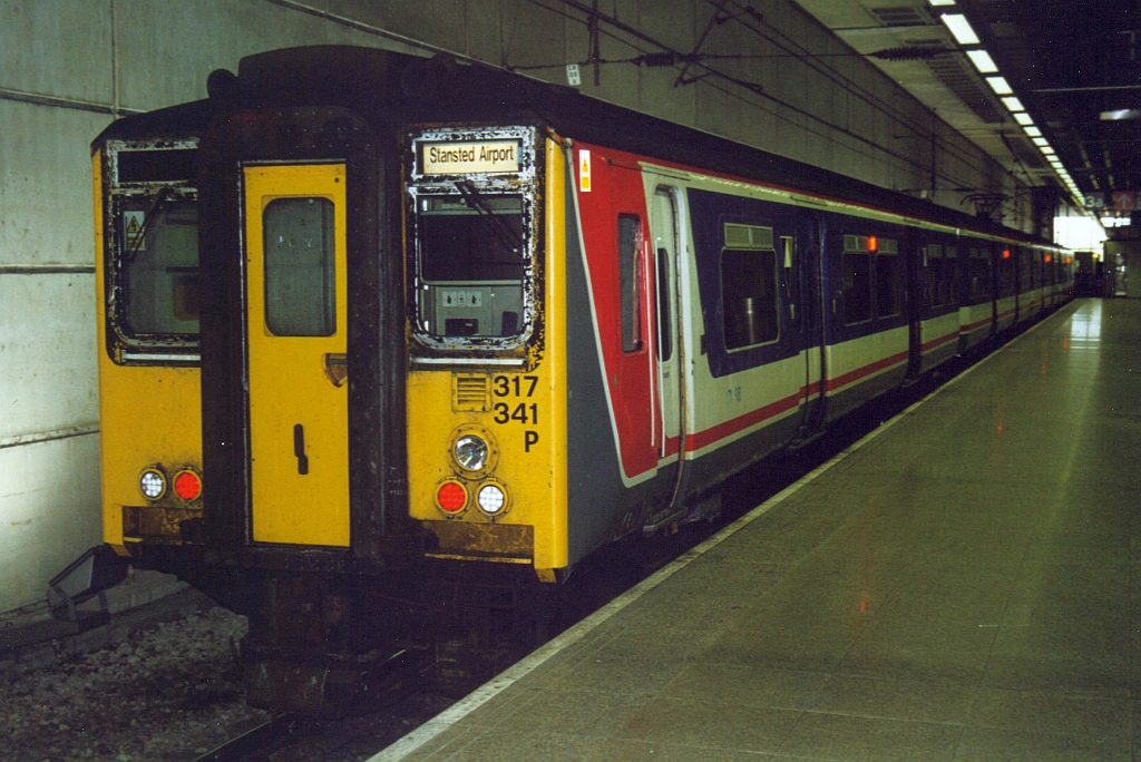 Anglia Railways (UIC-Kürzel AR, 1997-2004) 317 341P am 06.April 2002 in der Stansted Airport Station. (Fotoscan)