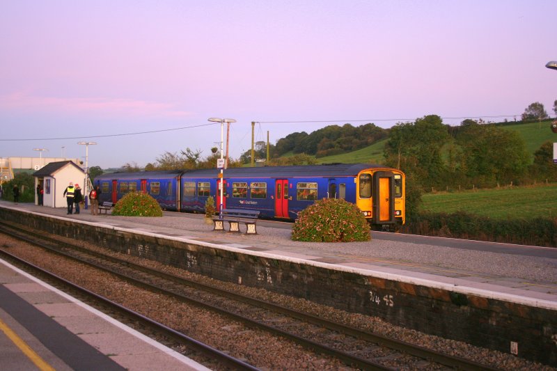 Abendstimmung im kleinen Landbahnhof Castle Cary (Summerset): 17.30-GreatWestern-Service Weymouth - Bristol Temple Meads, geführt durch 150 234, aufgenommen am 12.10.2009. Jonas Schaufelberger