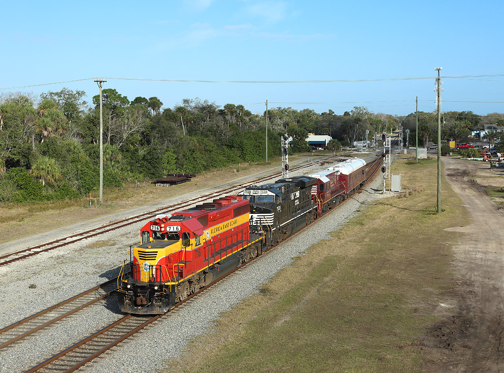 716 passes New Smyrna Beach whilst hauling the Norfolk Souther geometry train from Jacksonville to Miami, 10 Feb 2020.