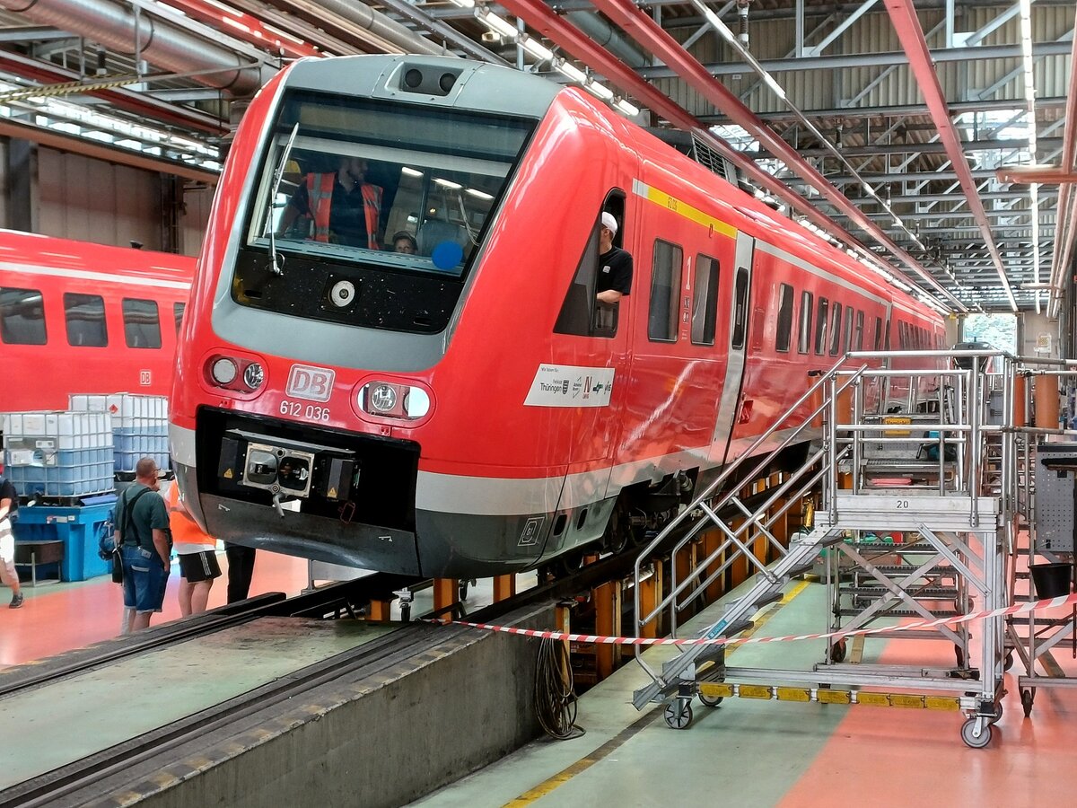 DB 612 036 beim vorführen der Neigetechnik, am 30.08.2025 im DB Werk Erfurt. Zum 100-jährigen Jubiläum des Bahnbetriebwerks Erfurt gab es einen Tag der offenen Tür. Frank Thomas