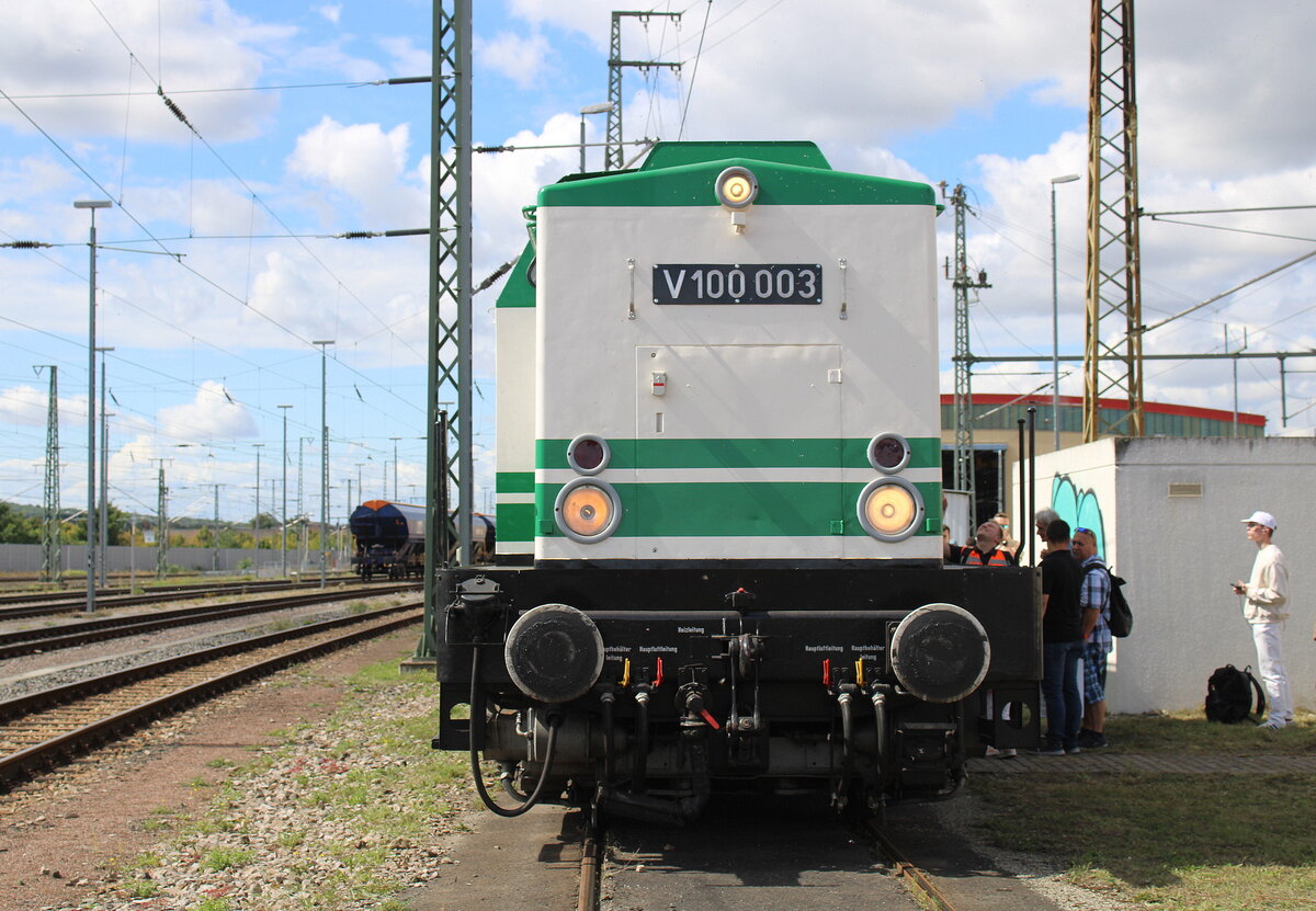 Am 30.08.2025 wurde im DB Werk Erfurt das 100-jährige Jubiläum des Bahnbetriebwerks Erfurt mit einem Tag der offenen Tür gefeiert. Dazu kam auch die DB Musem V100 003 mit dem DPE 88291 aus Magdeburg Hbf ins DB Werk. Frank Thomas